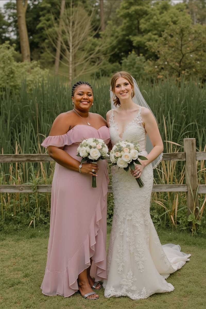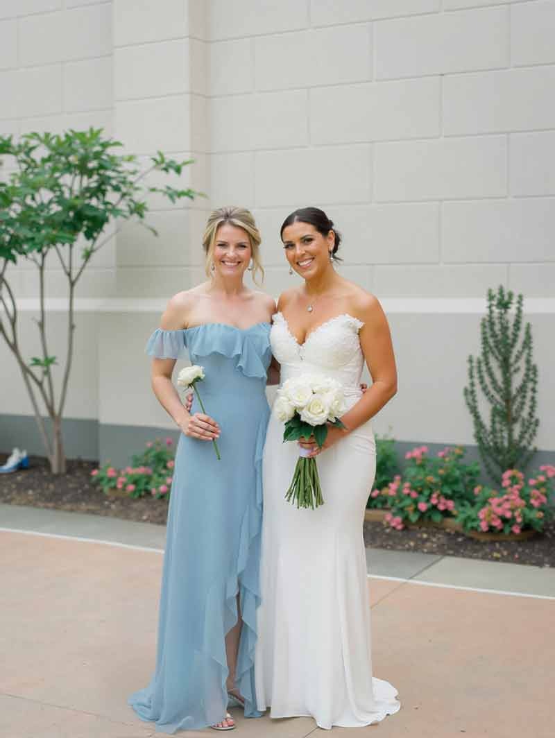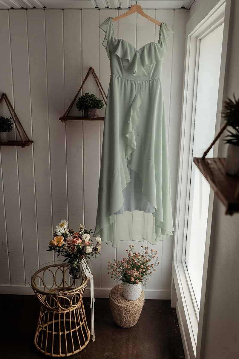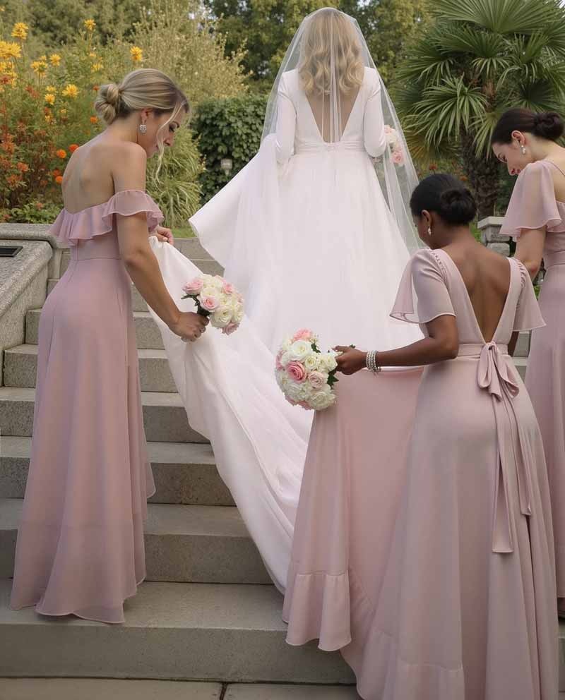 This dress is stunning! The combination of the off-the-shoulder neckline and the asymmetrical hem is just perfect. It’s elegant, sophisticated, and feels really special. The chiffon fabric flows so nicely, making it comfortable to wear all day. It's a dress that makes you feel confident and beautiful. I'm so glad I chose this one.