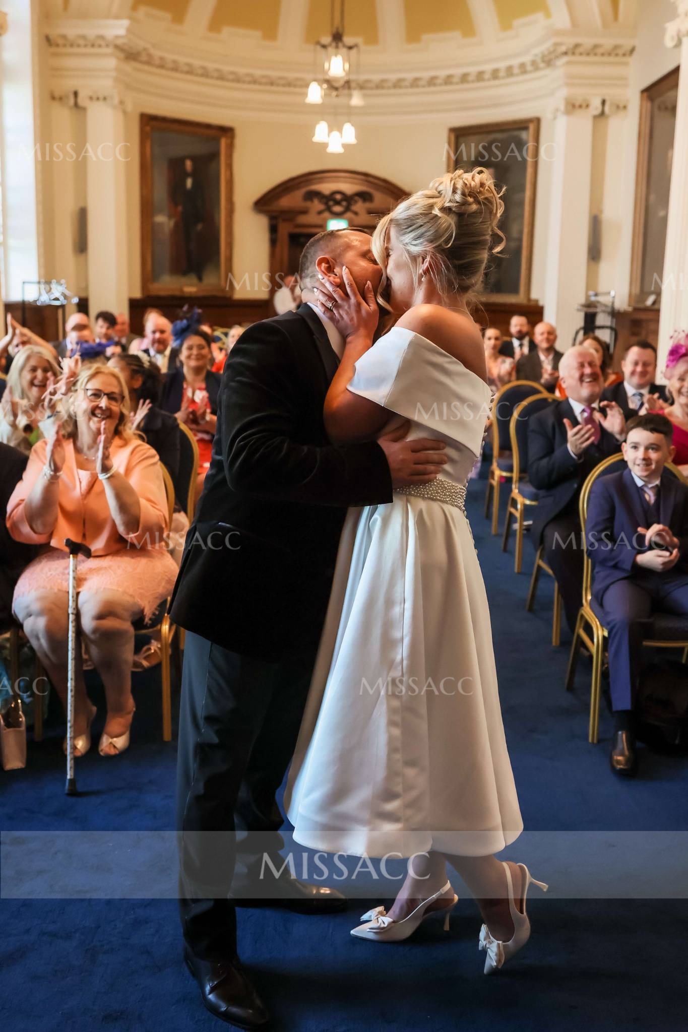 Just received my new wedding dress and I'm over the moon! The off-the-shoulder style is so elegant, and the tea-length is absolutely perfect for a more laid-back wedding. The fabric feels incredibly premium too. Can't wait to say 'I do' in it!