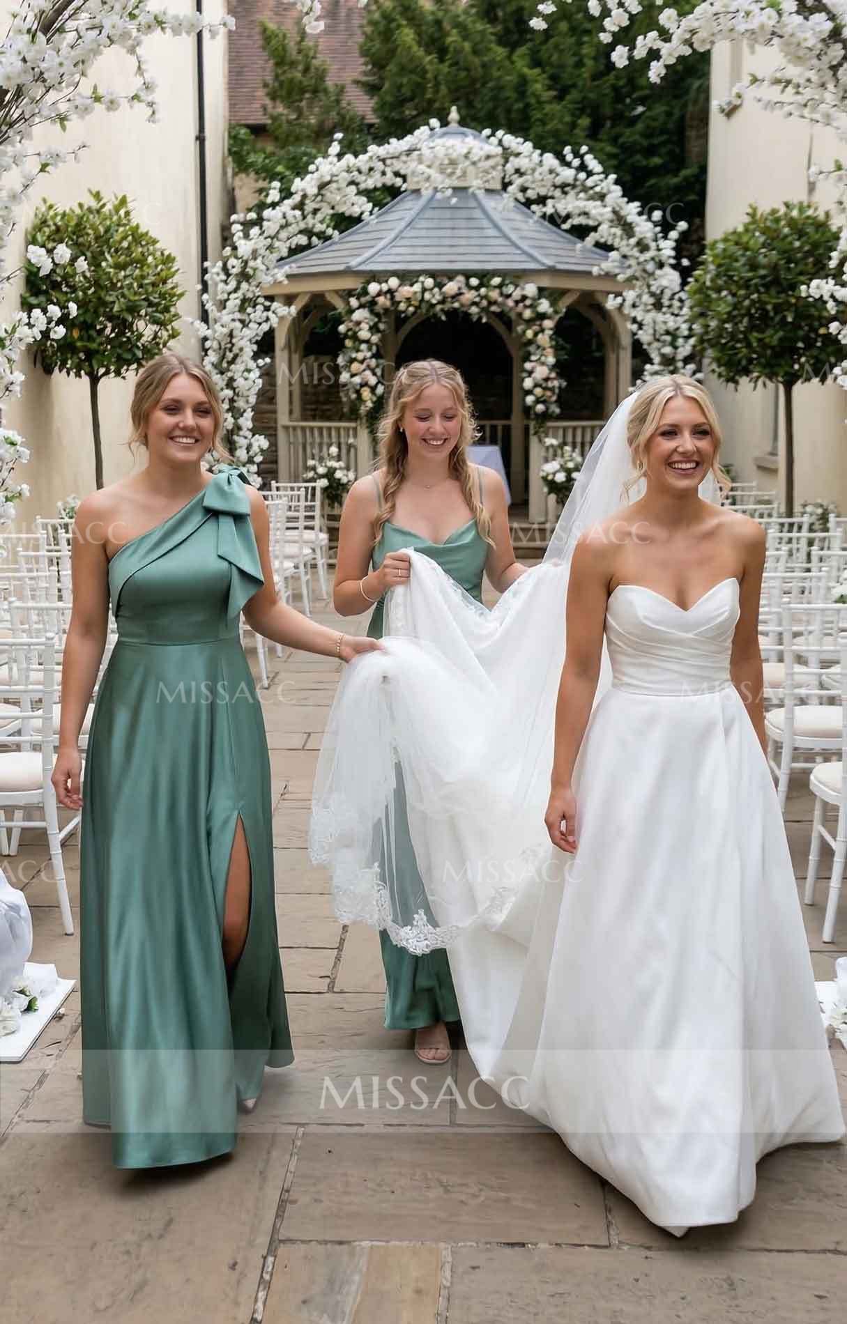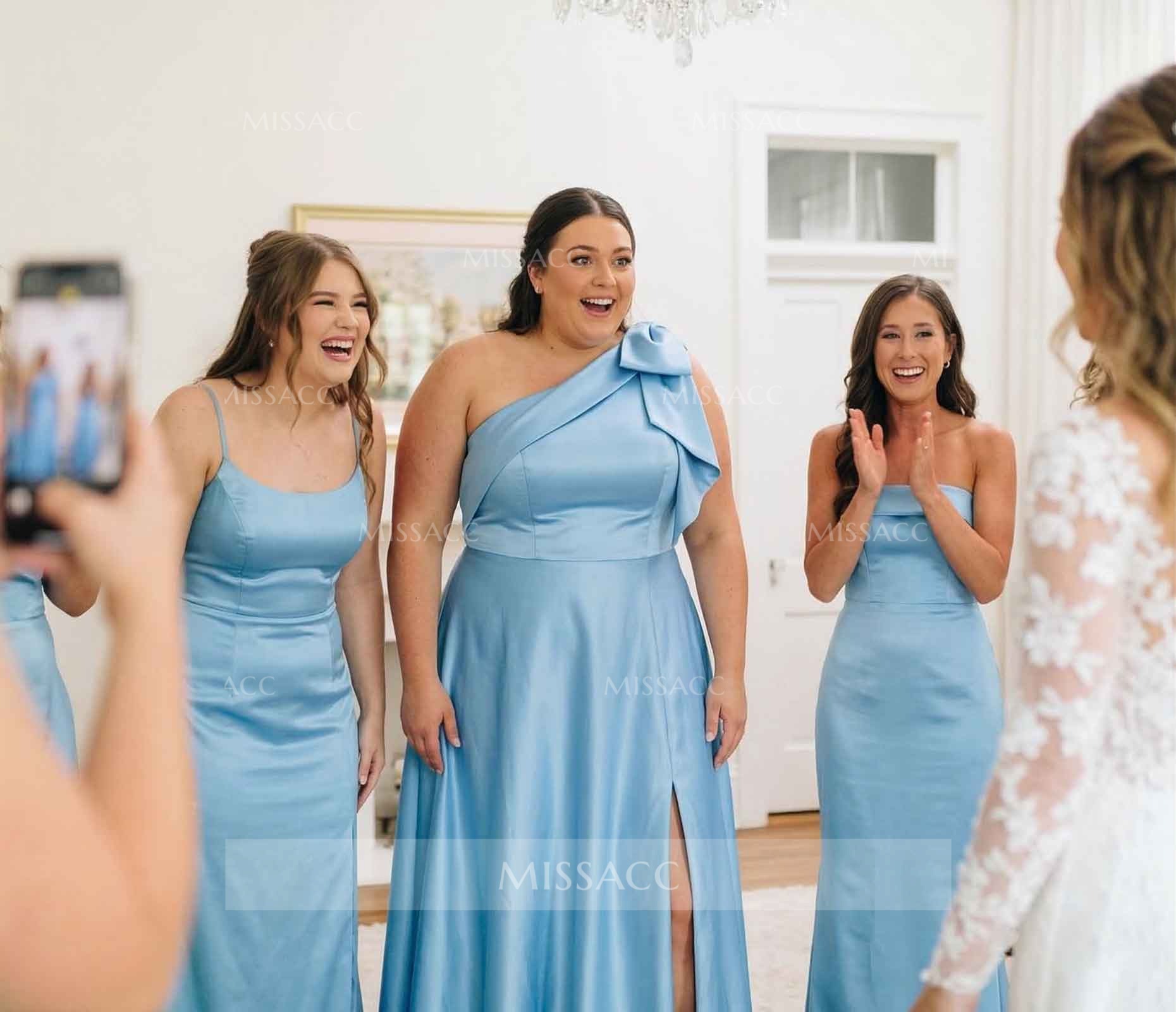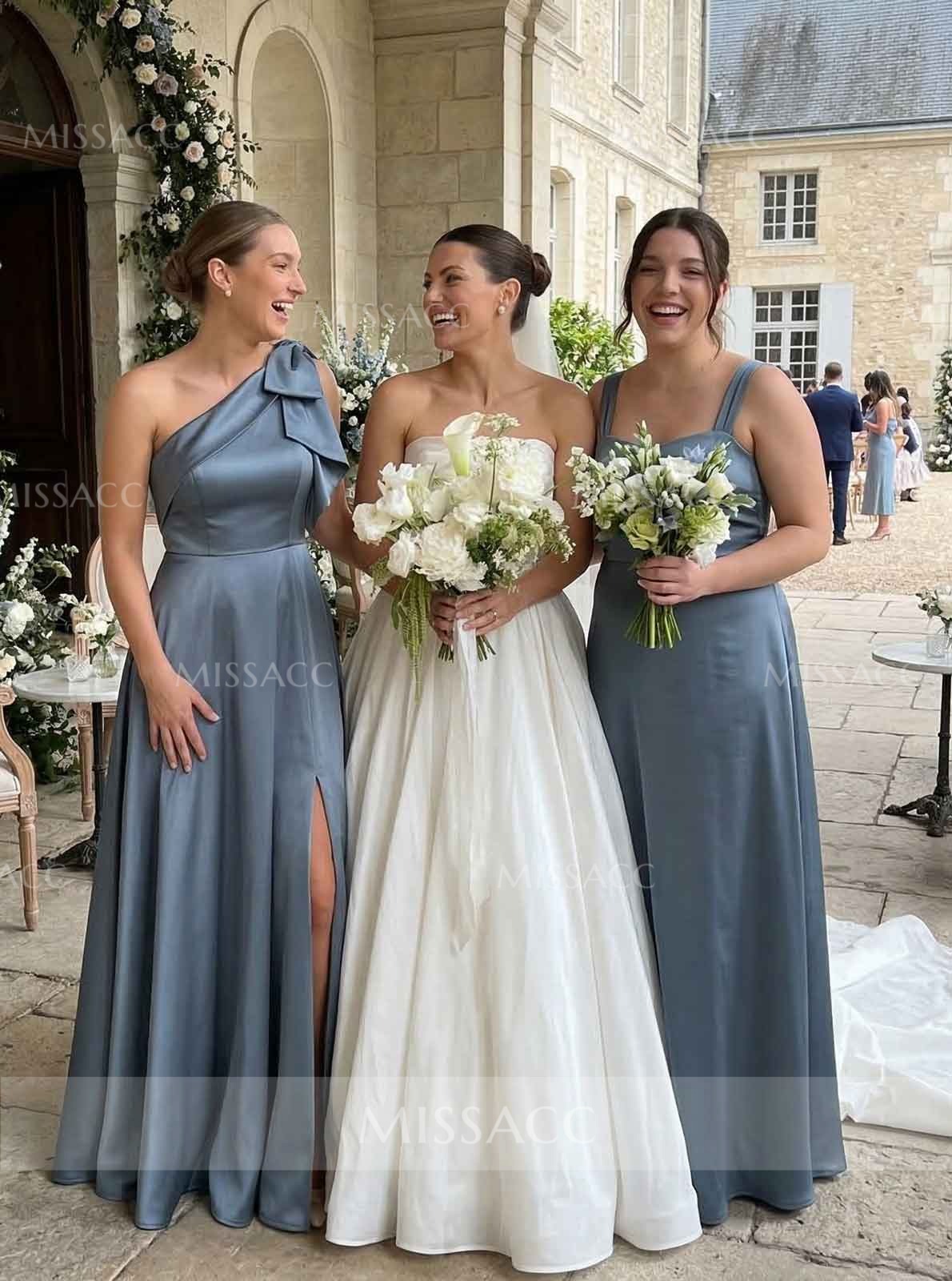 I bought this to be a bridesmaid in a rustic fall wedding. It is definitely a beautiful piece and the bow gives it a nice touch of elegance. My only minor issue was that it wrinkled a bit easily during the car ride to the venue so definitely bring a steamer with you. Once we steamed it out it flowed beautifully and the one shoulder cut was really flattering on my arms.
