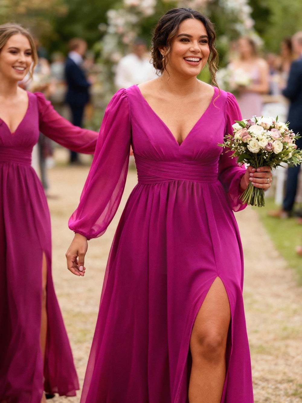 I needed a last-minute dress for a gala dinner and took a chance on this one. It fits like a glove! The chiffon is really flowy and elegant, giving it such a dreamy vibe. I love that it has pockets, or at least it felt like I could hide my hands comfortably in the folds. The split front makes it easy to walk in heels without tripping. My husband said it’s his favorite dress on me. Definitely a great purchase if you want to look classy without breaking the bank.