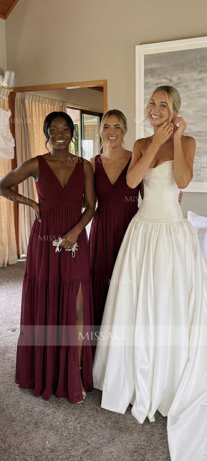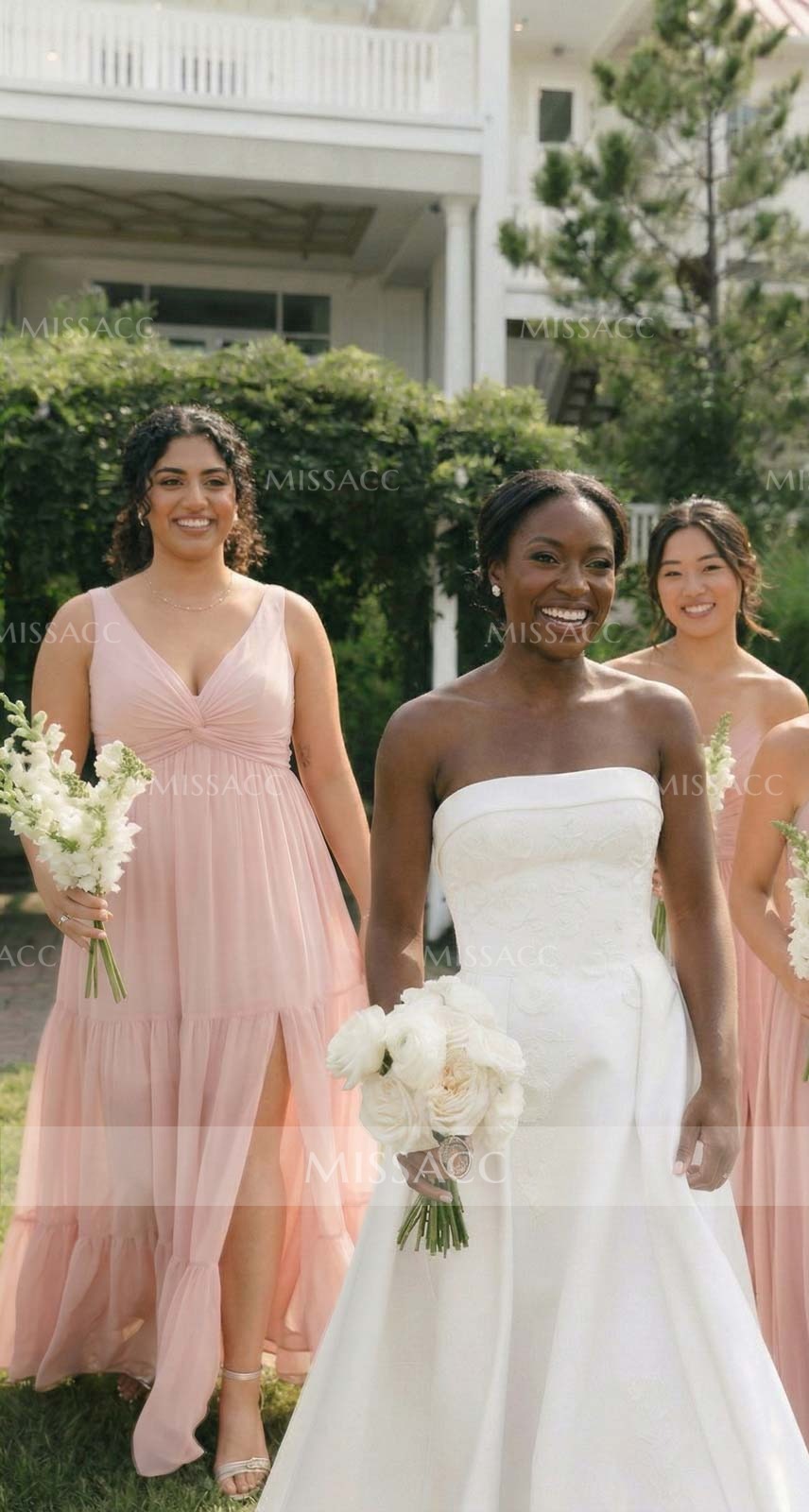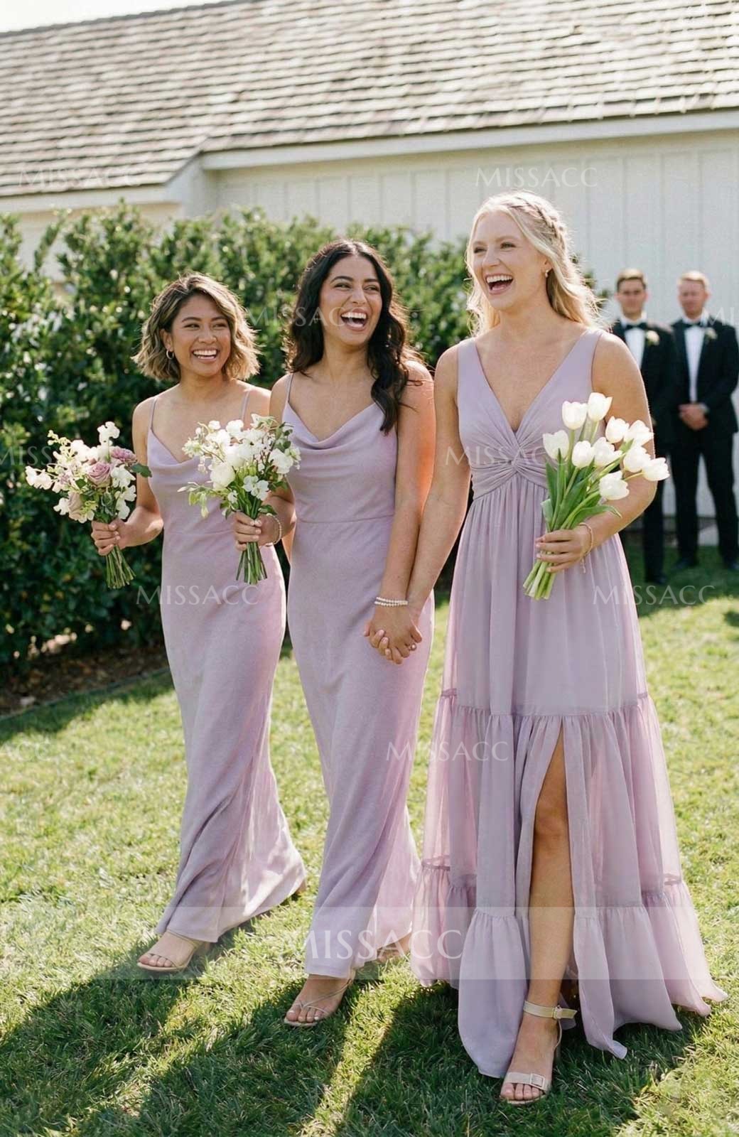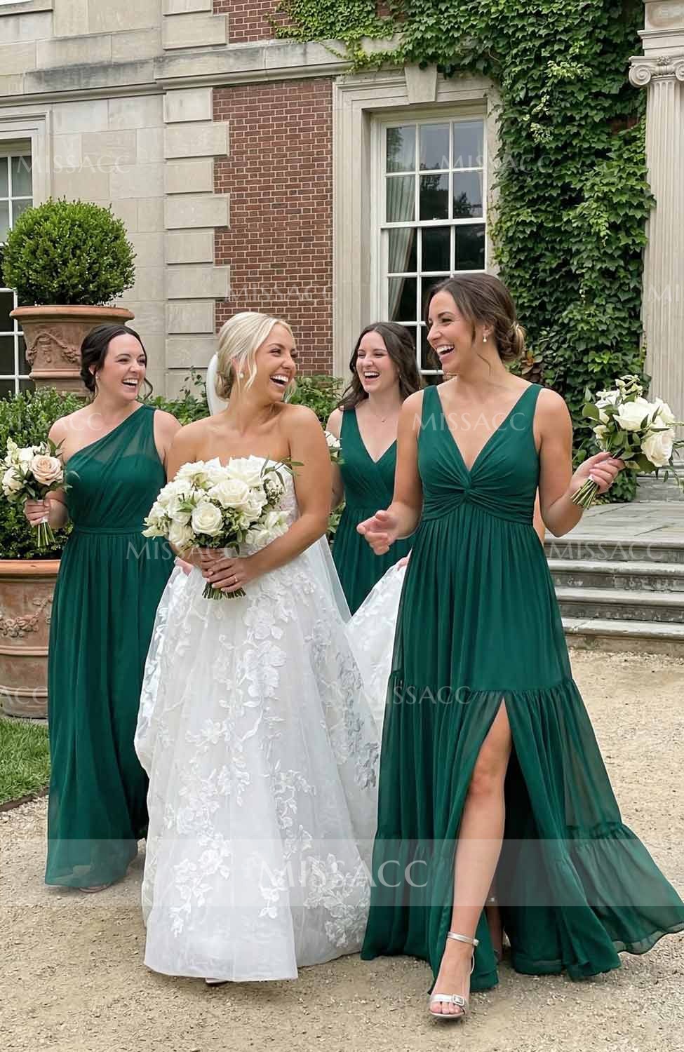 Honestly this shape is so flattering. The A-line cut hides my tummy and the front split gives it a fun vibe without being too revealing. I felt really confident walking down the aisle as a bridesmaid. Would definitely wear it again to a fancy dinner.