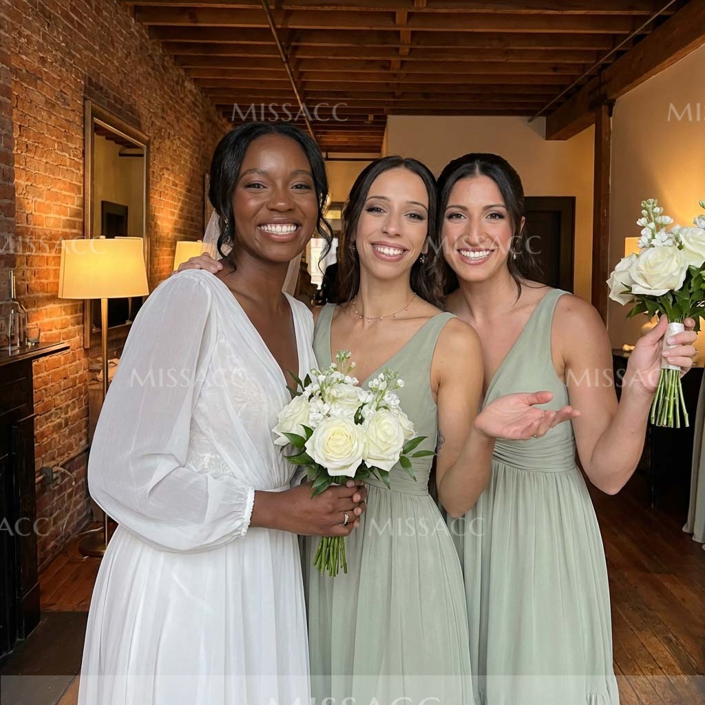 I was a little worried about the plunging neckline but it actually fits really well. The fabric feels nice and flowy. Got a ton of compliments at the reception!