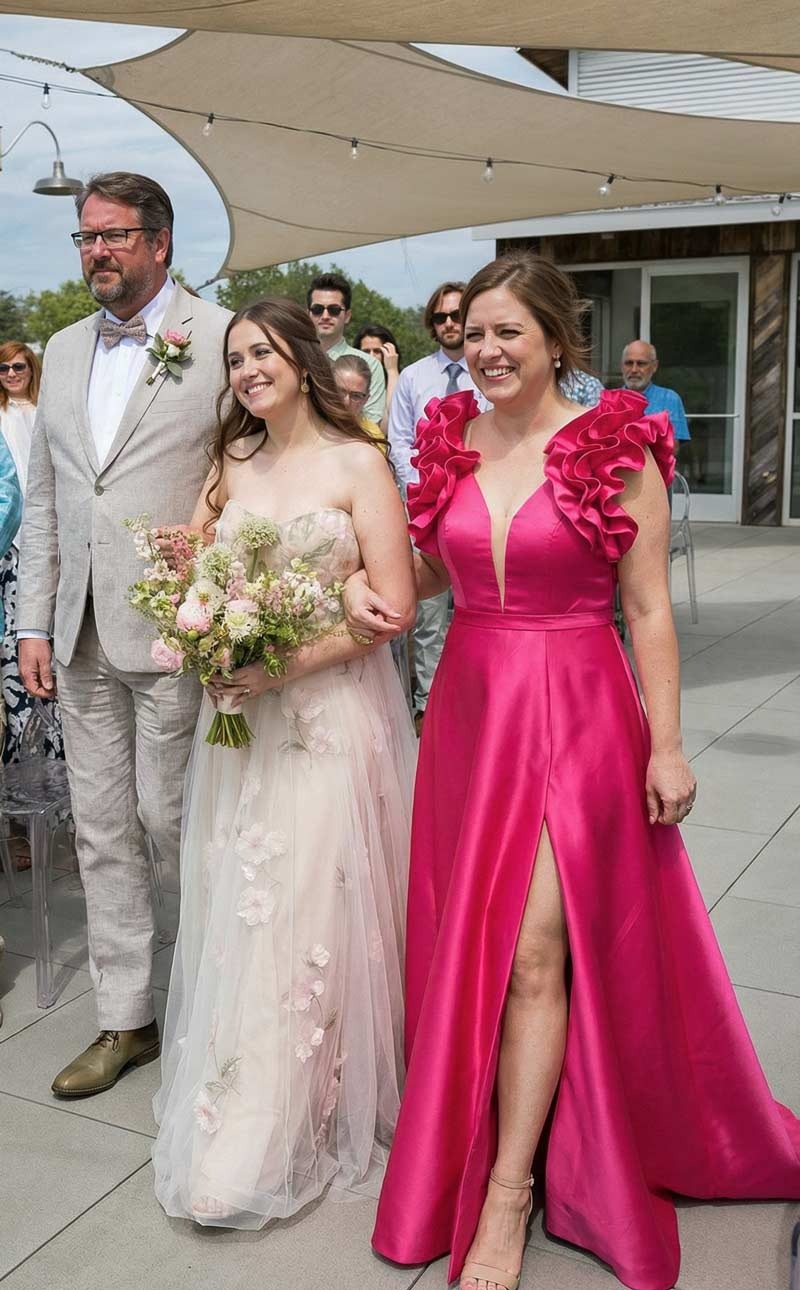 I'm so impressed with this dress! The fit is perfect and the ruffles give it a really elegant and sophisticated look. My mom can't wait to wear it and I know she'll be the most stylish mother of the bride.