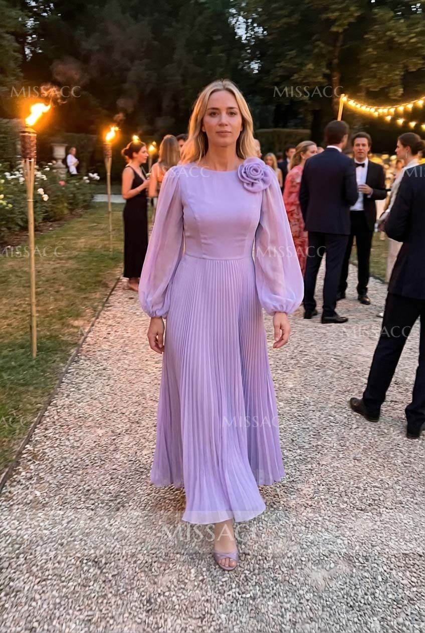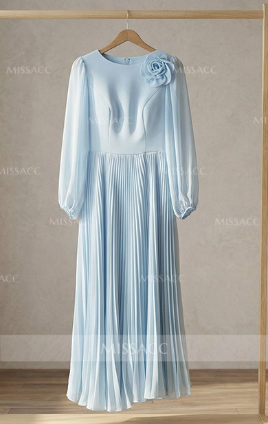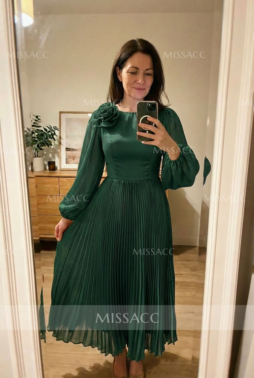 This dress was honestly a lifesaver for my daughter's autumn wedding. I was so worried about finding something that covered my arms without making me look frumpy, and those long sleeves are just perfect—light enough that I wasn't sweating but provided the coverage I wanted. The pleated flower detail is really sweet in person, much nicer than I expected from the photos. It fit surprisingly well right out of the bag, though I did have to get the hem taken up just a smudge since I'm on the shorter side. The chiffon feels nice and swishy when you walk. I got so many compliments from the other guests! It’s definitely a dress I can see myself wearing again to a formal dinner or another event, which is rare for these kinds of things. Solid purchase for sure.
