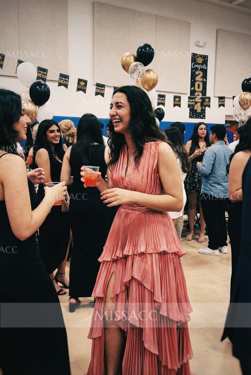 This is one remarkable prom dress! The comfort and fit are outstanding, and the high split is absolutely eye-catching. It's both trendy and classy, making you the star of the night. You can't go wrong with this one for your prom!