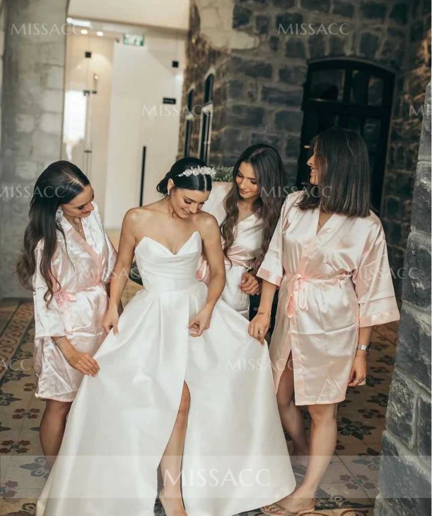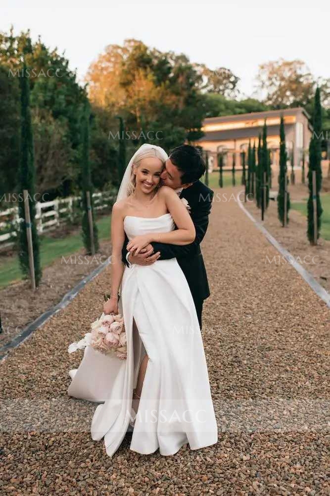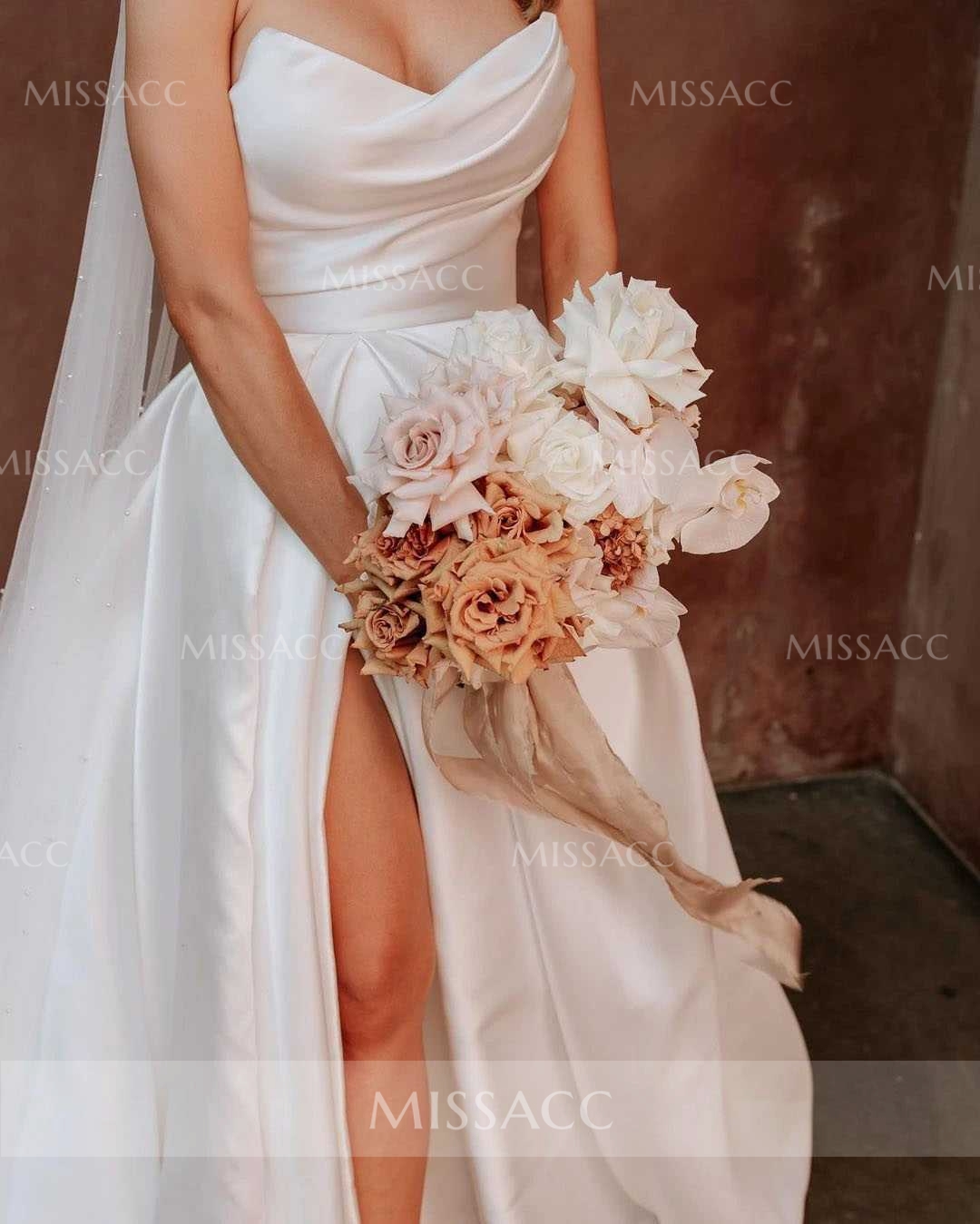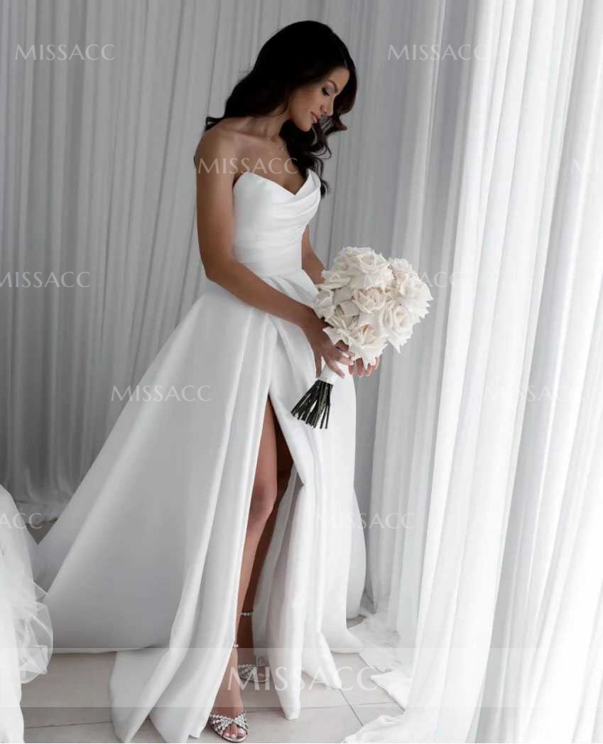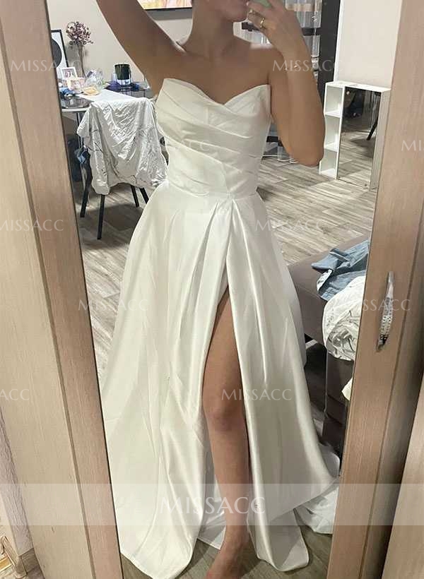 A-Line Sweetheart Satin Sweep Train Wedding Dresses With Split Front