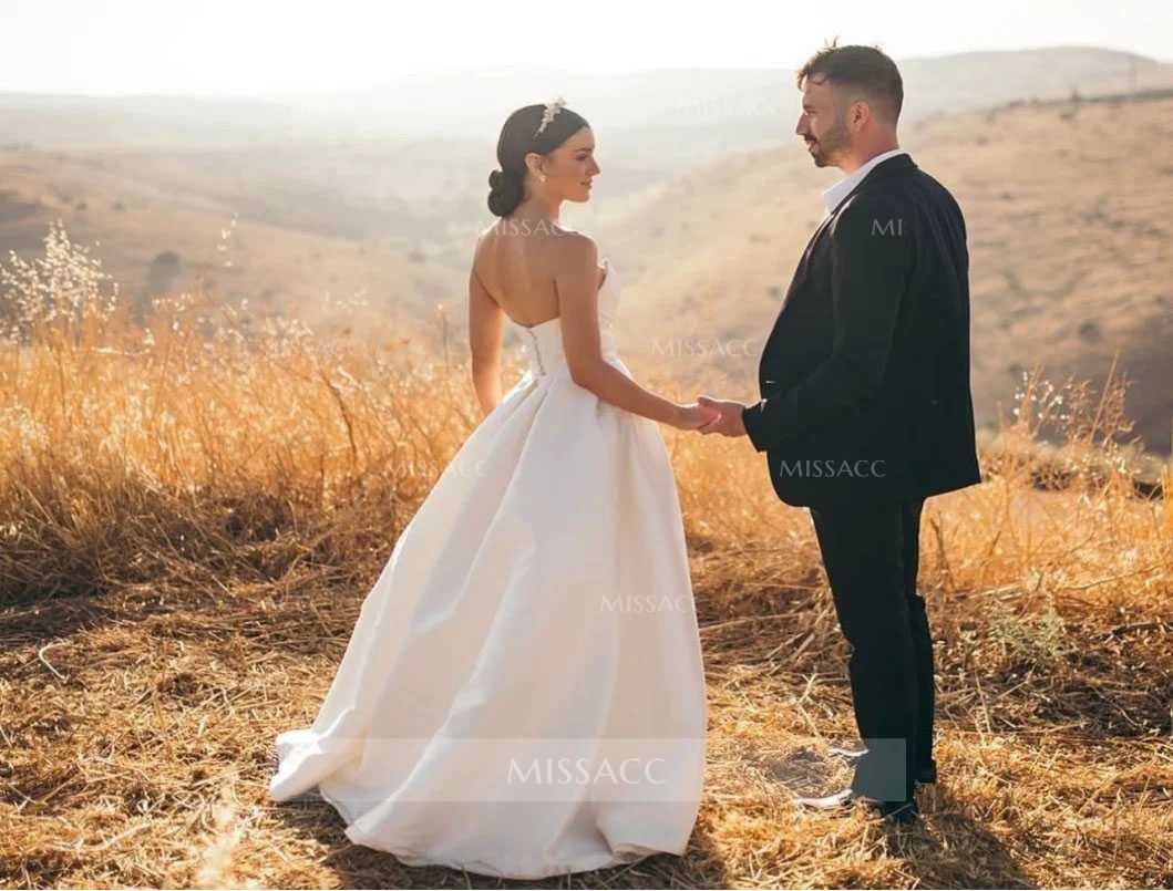 "Exquisite A-Line Satin Wedding Dress with Sweetheart Neckline and Sweep Train. Perfect for a romantic ceremony."