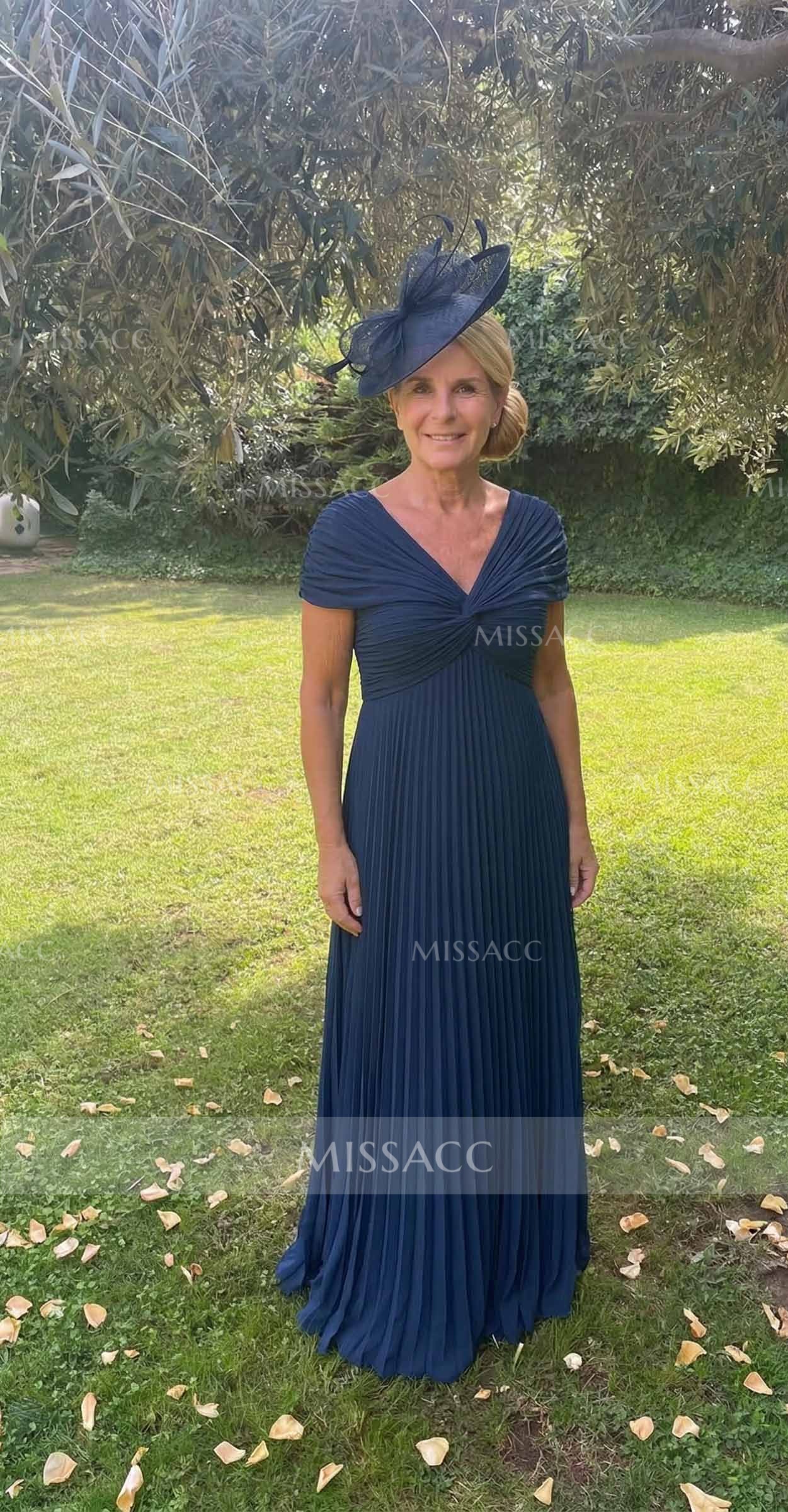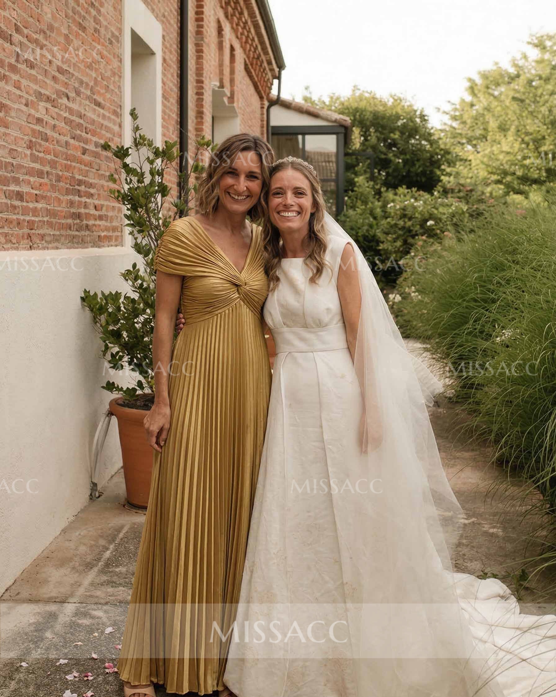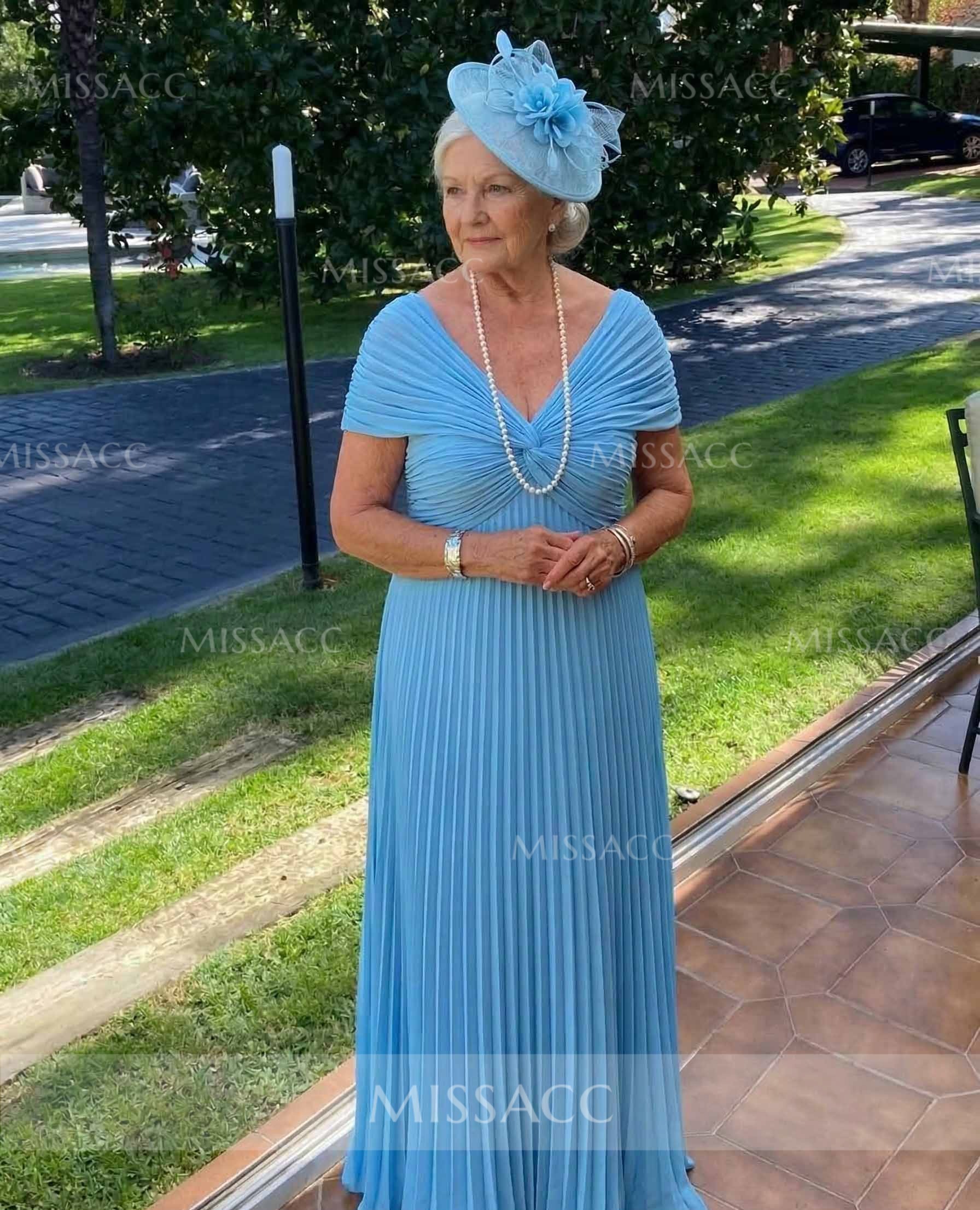 Discover our A-line V-neck chiffon mother of the bride dress, perfect for a graceful wedding celebration. Floor-length elegance with 1/2 sleeves for a sophisticated look.