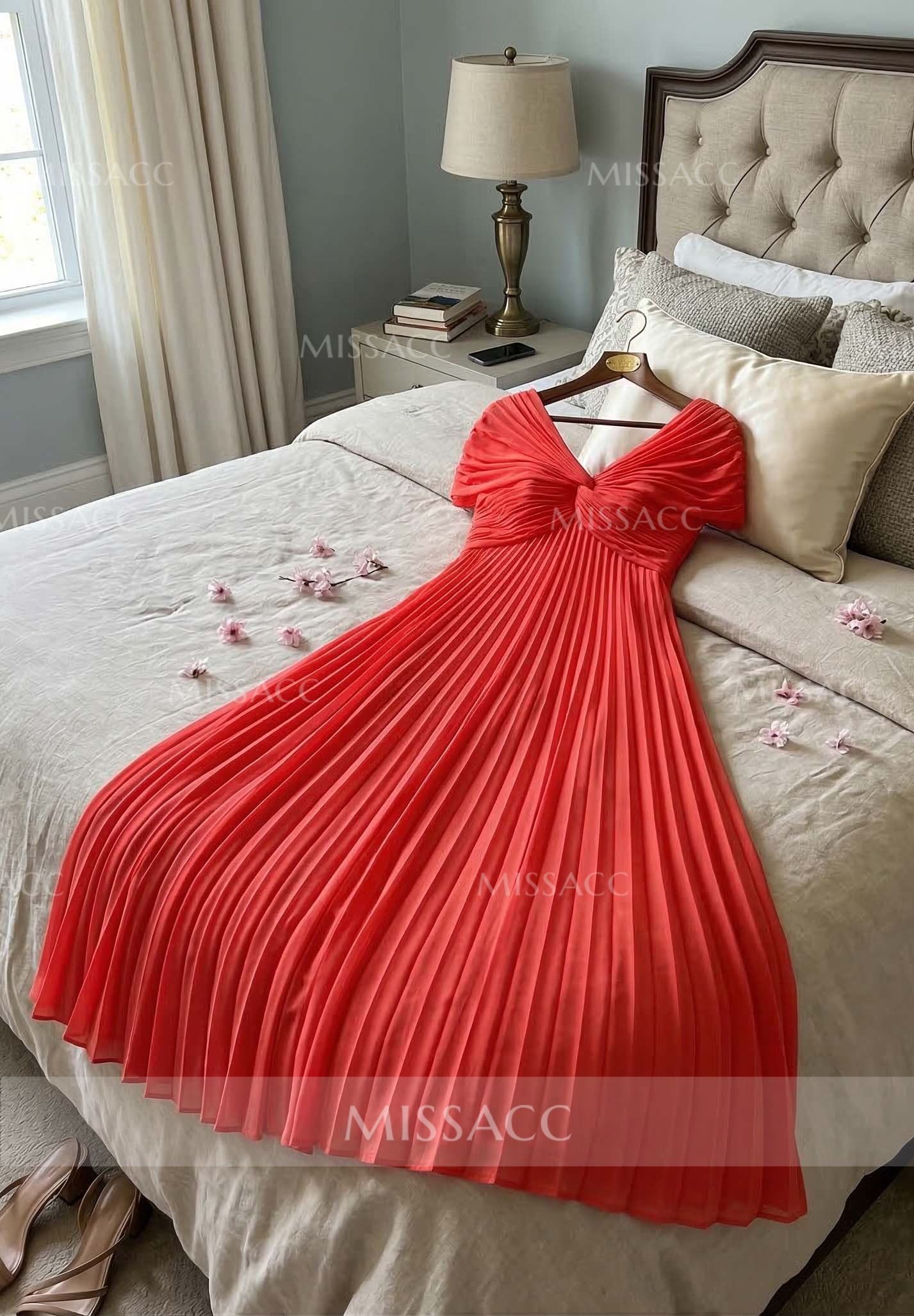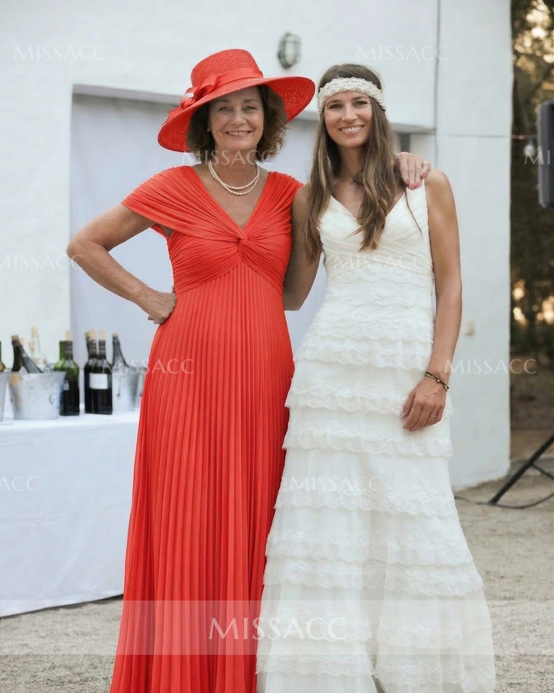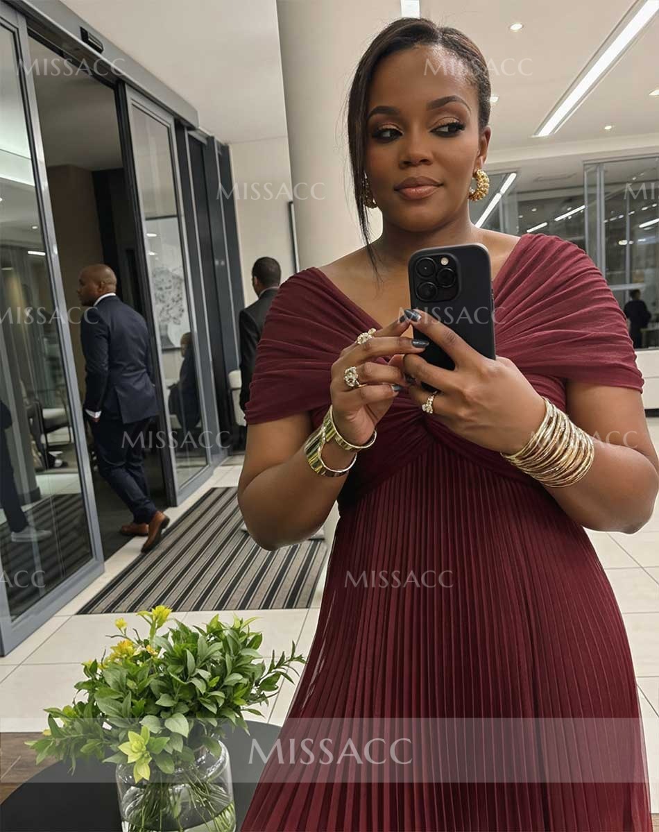 Discover our A-line V-neck chiffon mother of the bride dress, perfect for a graceful wedding celebration. Floor-length elegance with 1/2 sleeves for a sophisticated look.
