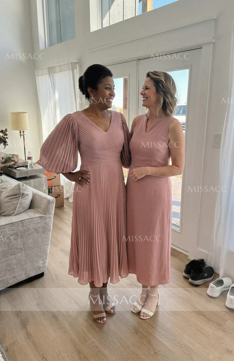 I wore this dress to my daughter's wedding, and it was a perfect fit. The pleats are a very beautiful detail that adds a sense of layering. It's a well-made dress, and it looks great in person.