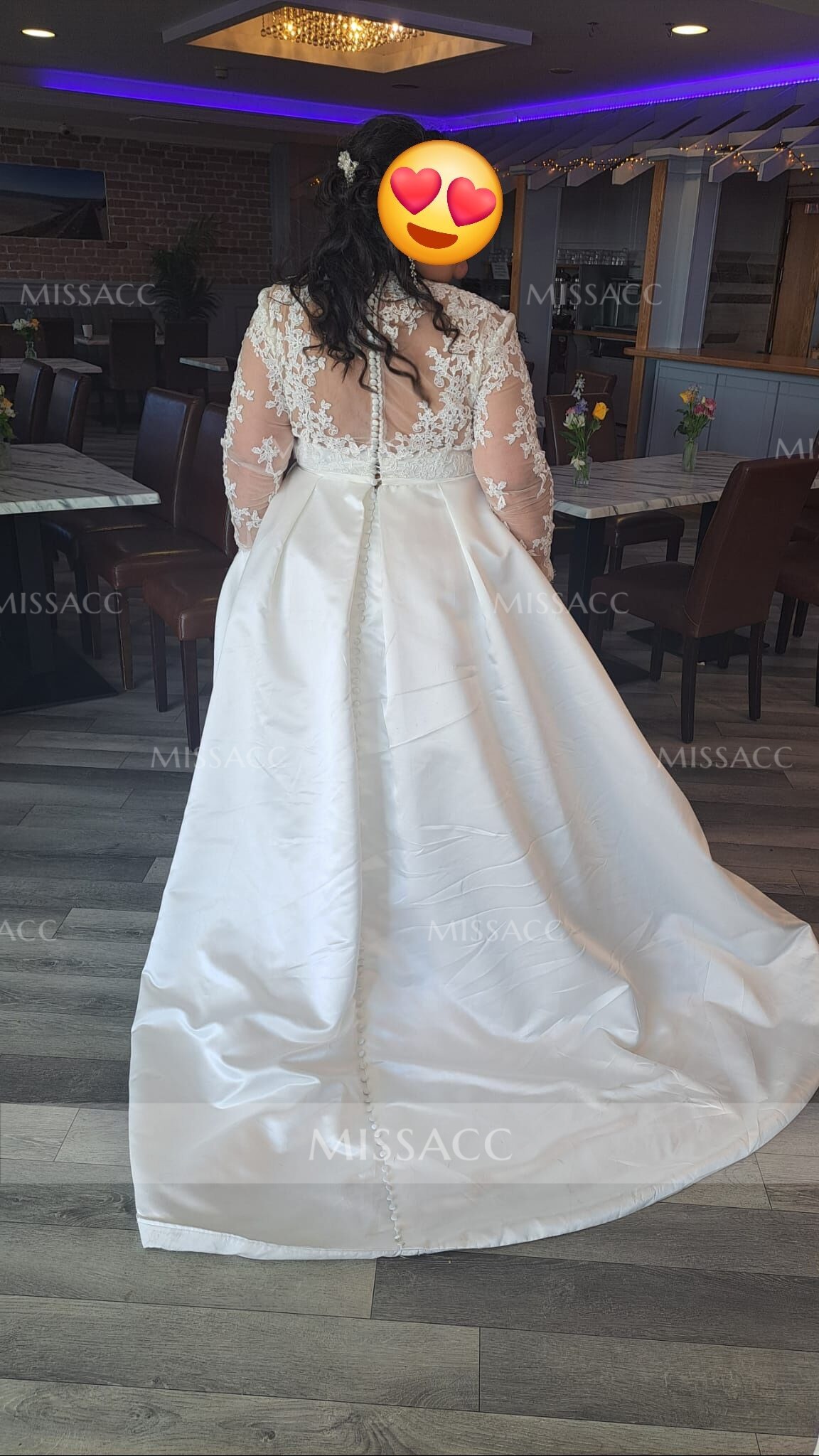 A-Line V-Neck Long Sleeves Satin Wedding Dresses With Pockets - by L***9,