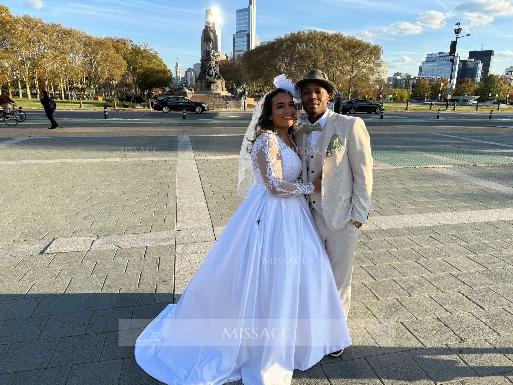 A-line V-neck long-sleeve wedding dress with pockets, crafted in soft fabric for a comfortable fit. Perfect for a chic, modern wedding look.