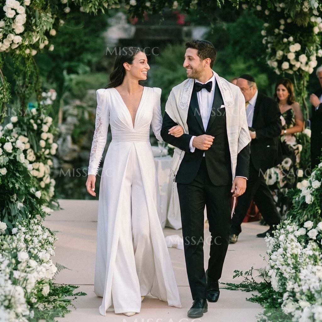 This dress is absolutely stunning in person! I got so many compliments on the lace details during my reception. It feels surprisingly heavy and high quality, not cheap or flimsy. I was a bit worried about the V-neck being too deep, but it sat really nicely and I felt secure the whole night. Shipping took a little longer than I hoped, so definitely order ahead of time, but the wait was worth it.