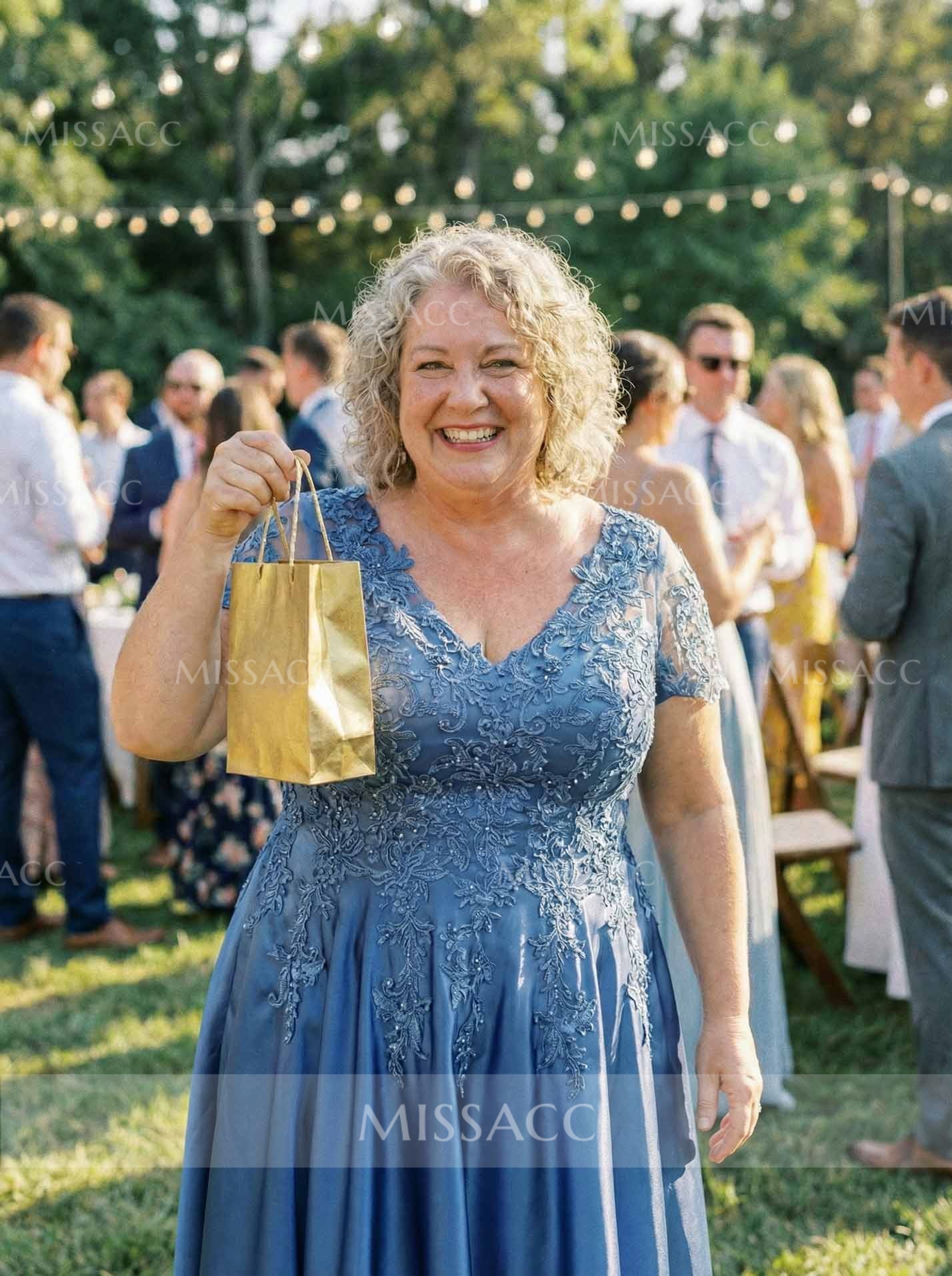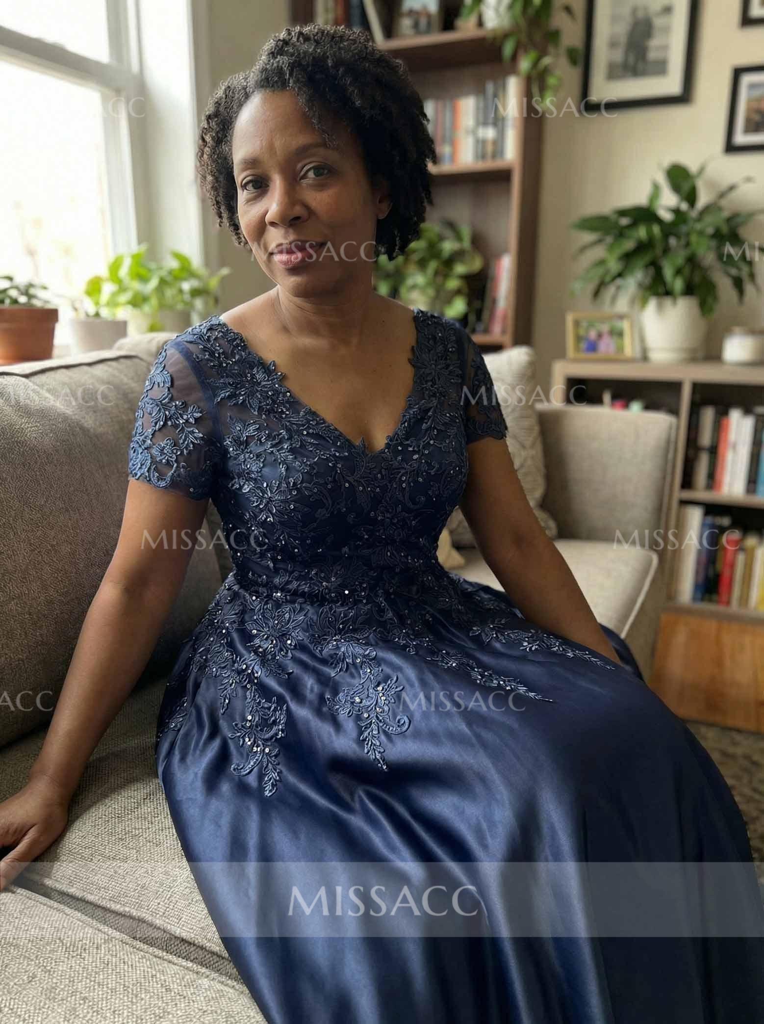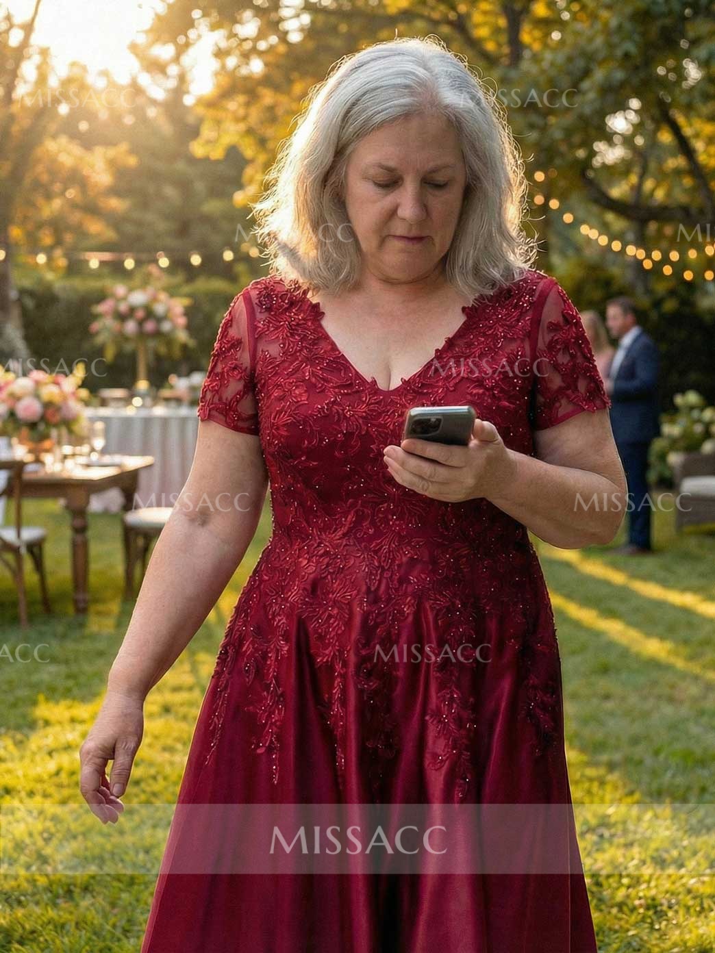 This A-line V-neck satin mother of the bride dress, featuring delicate lace detailing and short sleeves, offers a sophisticated choice for formal events. Its timeless silhouette and luxurious fabric ensure graceful style. Perfect for weddings and special celebrations. Shop elegant dresses for mothers.