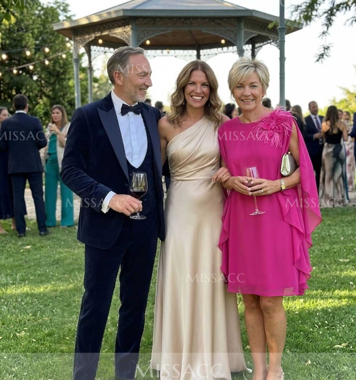 A-Line V-Neck Short Sleeves Tea-Length Satin Mother Of The Bride Dresses