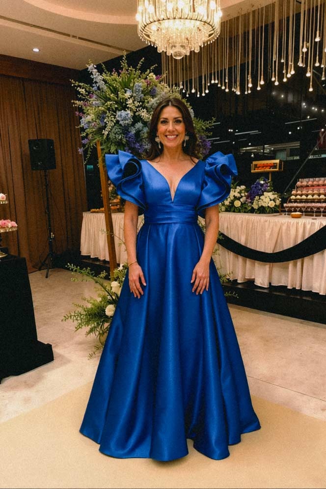 Y’all, this royal blue satin gown was the best purchase I made this year. I wore it to my sister’s cocktail party, and let me tell you—every single person stopped me to ask where I got it. The ruffle sleeves? Chef’s kiss—drama in the best way, but not heavy at all (I danced for HOURS and they stayed put!). The satin is so luxe and smooth, and the fit? Snatched my waist perfectly (pro tip: size up if you’re between sizes—mine fit like a glove after a tiny tailor tweak). Paired it with that lime clutch for a pop, and I felt like a million bucks. This isn’t just a ‘special occasion’ dress—I’m already plotting when I can wear it again (my cousin’s gala in 2026? Done). 10/10, would buy in every color if I could.