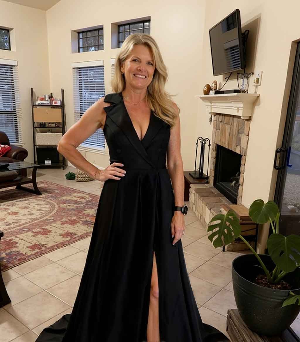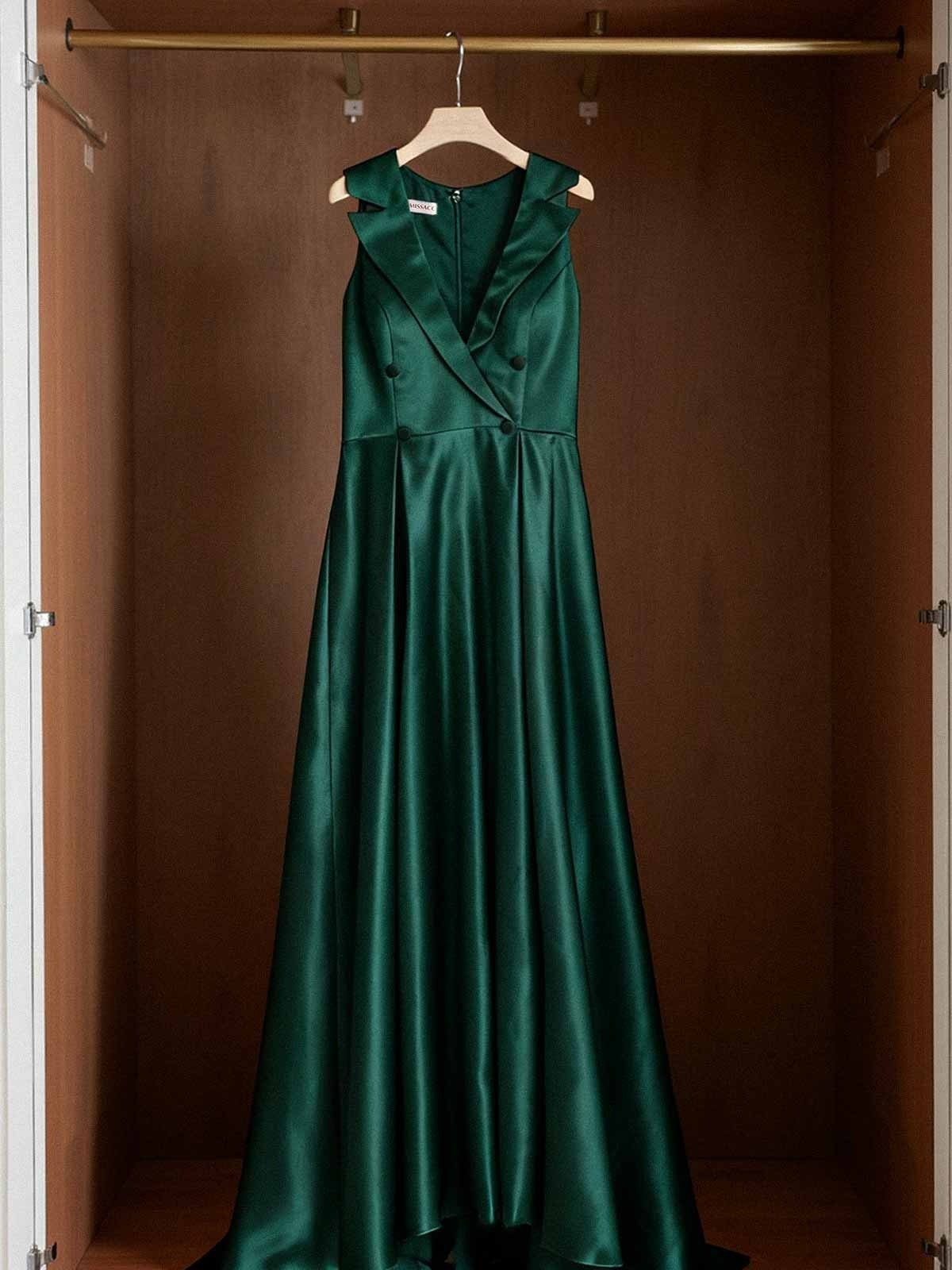 Five stars! This gown exceeded my expectations. The quality of the satin-like fabric is incredible—it looks and feels very expensive. The double-breasted tuxedo collar and buttons give it such a sophisticated, tailored edge. It hung beautifully right out of the package. This is a show-stopping piece for a formal event and a fantastic value.