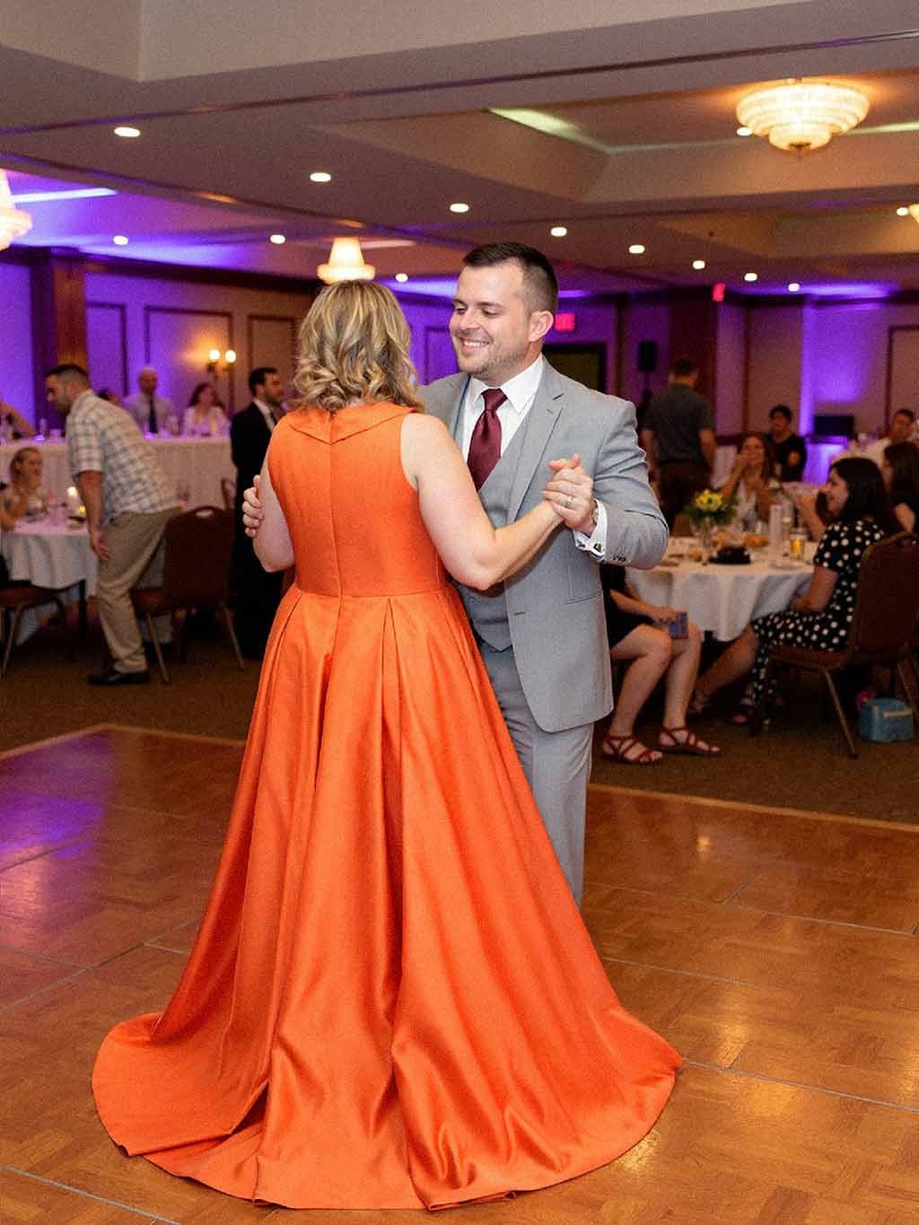 Absolutely stunning for a wedding reception! The way the skirt moves while dancing is just magical. The fit around the back and shoulders was perfect and felt secure all night. The material has a luxurious weight and sheen to it. Paired with a tailored suit, it made for the most elegant first dance. Highly recommend this dramatic style for any formal event.