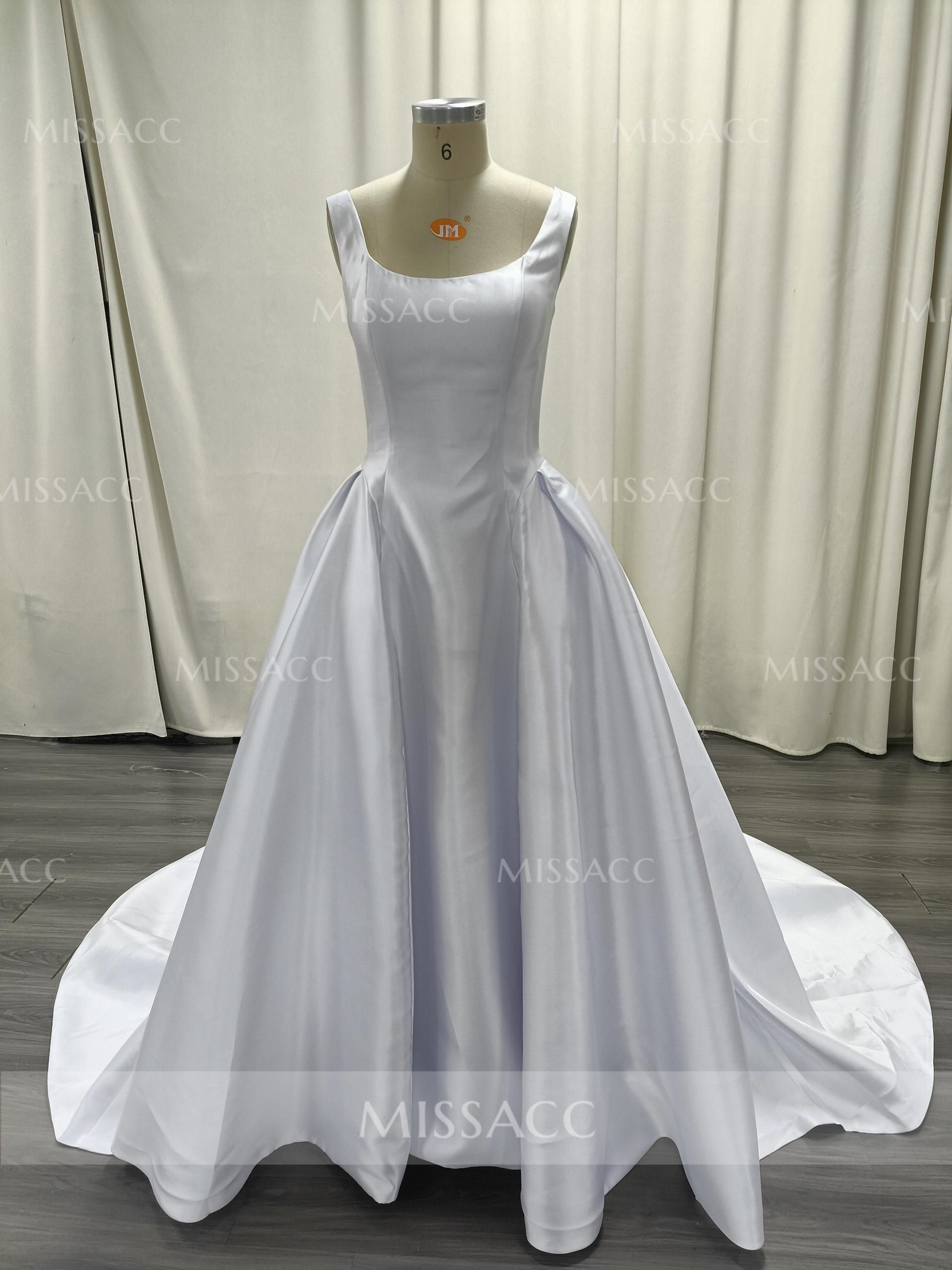 Ball-Gown Scoop Neck Sleeveless Court Train Tulle/Twill Satin Wedding Dresses #SWD13005