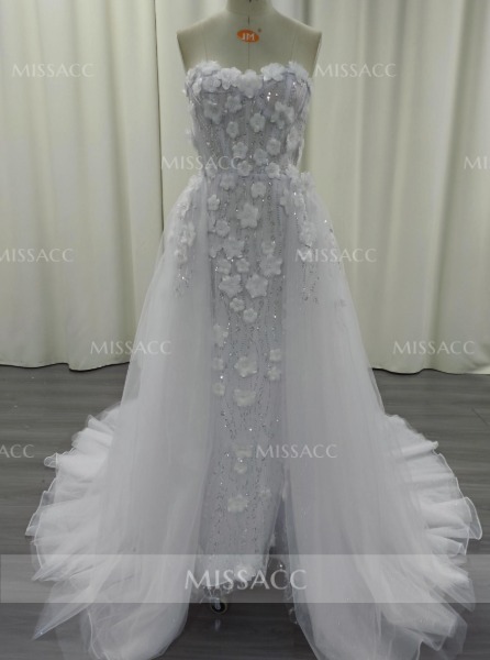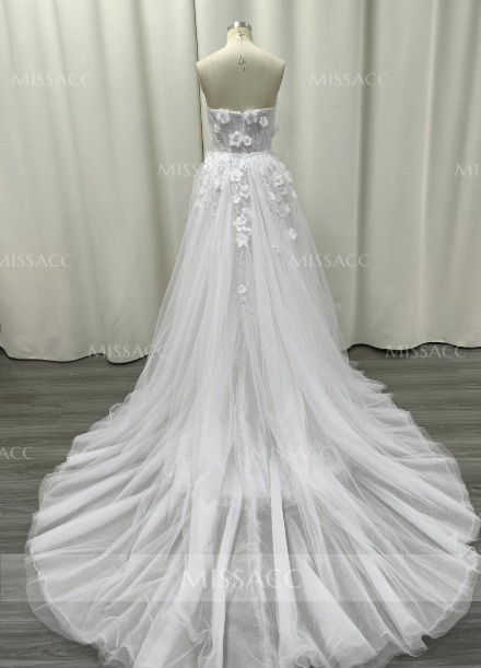 Ball-Gown Sweetheart Sleeveless Sweep Train Chiffon Lace Tulle Wedding Dresses #SWD12868