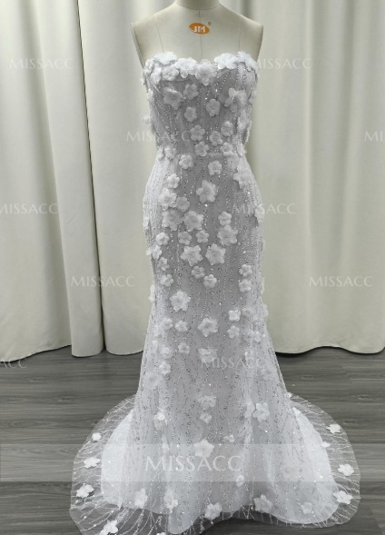 Ball-Gown Sweetheart Sleeveless Sweep Train Chiffon Lace Tulle Wedding Dresses