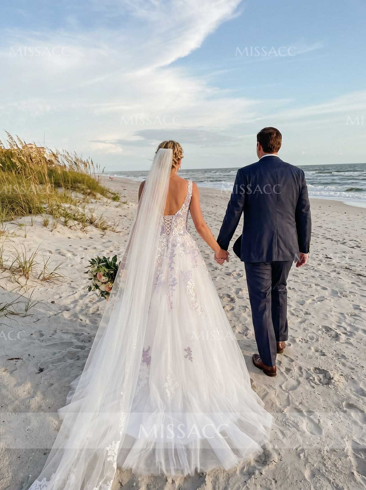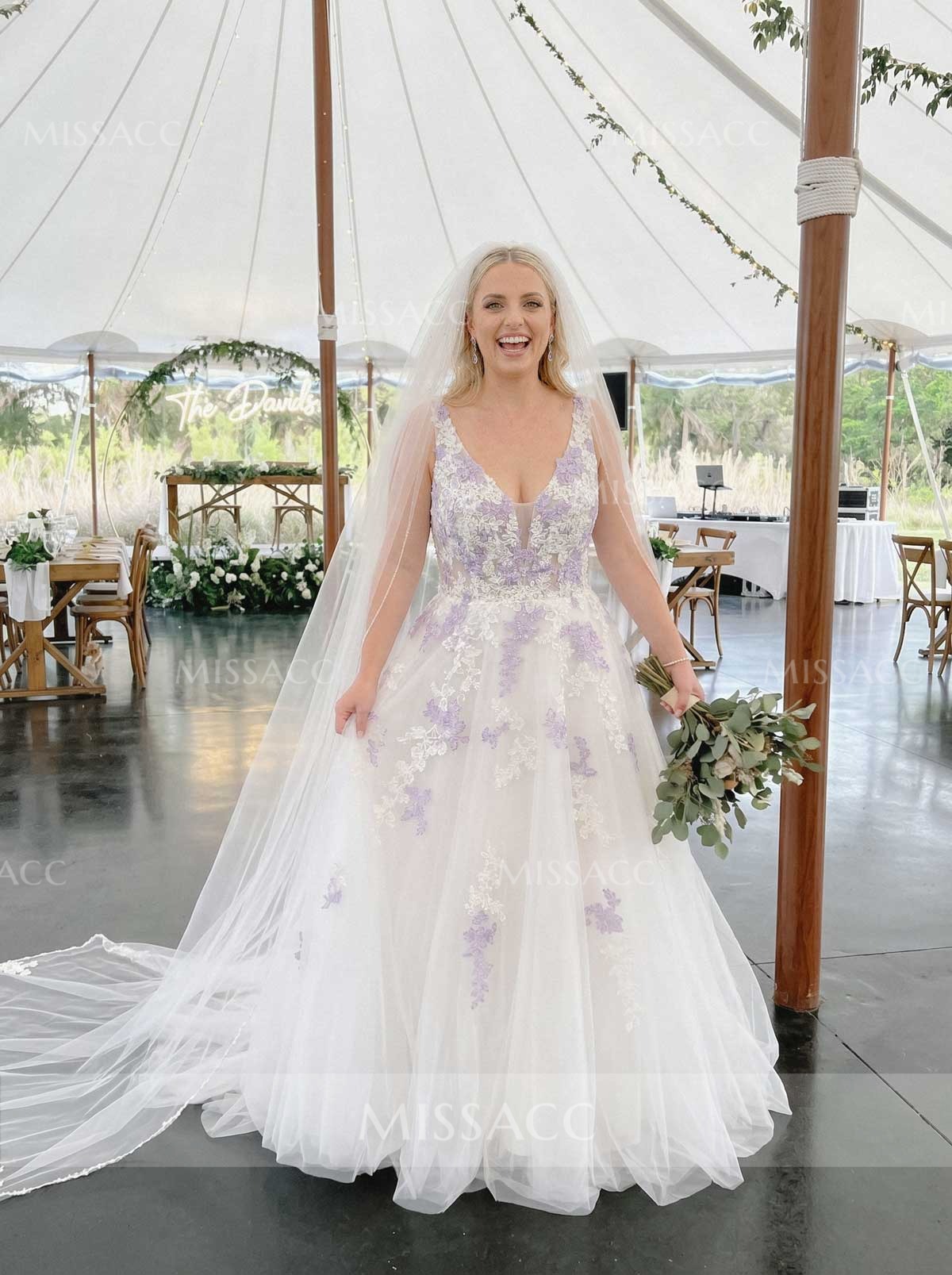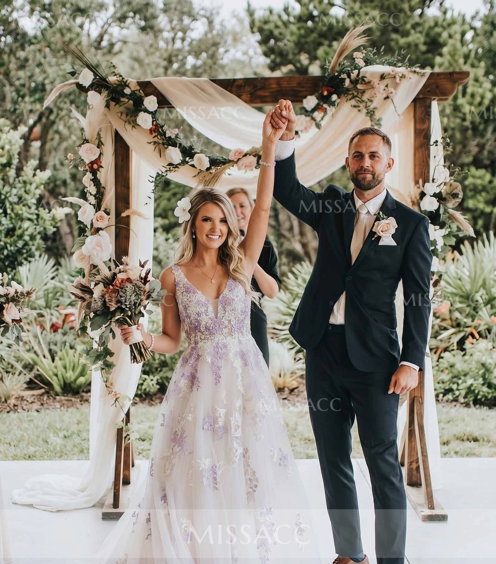 This dress was absolutely perfect for my big day! The floral appliques are so delicate and beautiful. I felt like a princess standing under the arch with my husband. The fit was spot on and it flowed so nicely. Highly recommend!