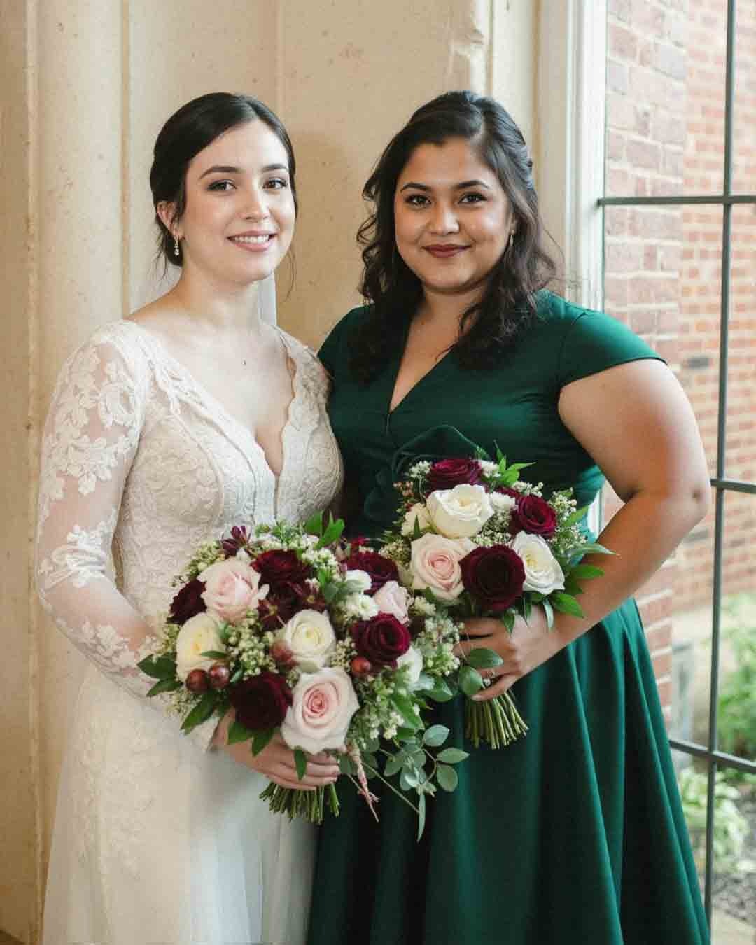 This gown is beautiful and well-made. The little flowers add such a lovely touch, and the v-neck is flattering. It's a bit longer than I expected, but that's easily fixable with heels. Overall, very pleased!