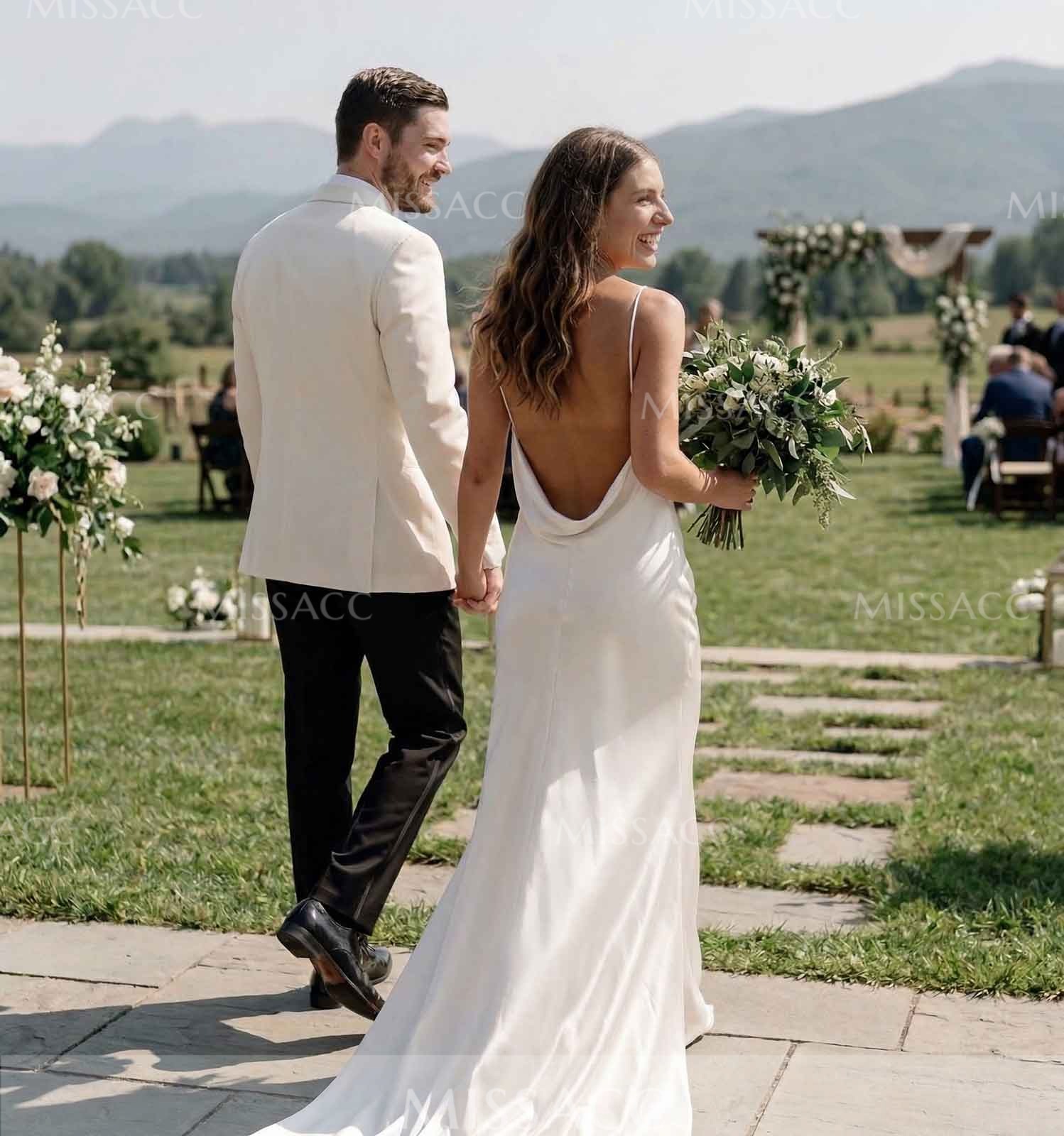 Elegant and alluring, this Open Back Silk Like Satin Spaghetti Straps Wedding Dress is a stunning choice for your special day. The flowing silk-like satin fabric drapes beautifully, while the open back design adds a touch of allure. The delicate spaghetti straps enhance the feminine silhouette, making you feel like a glamorous bride on the beach.
