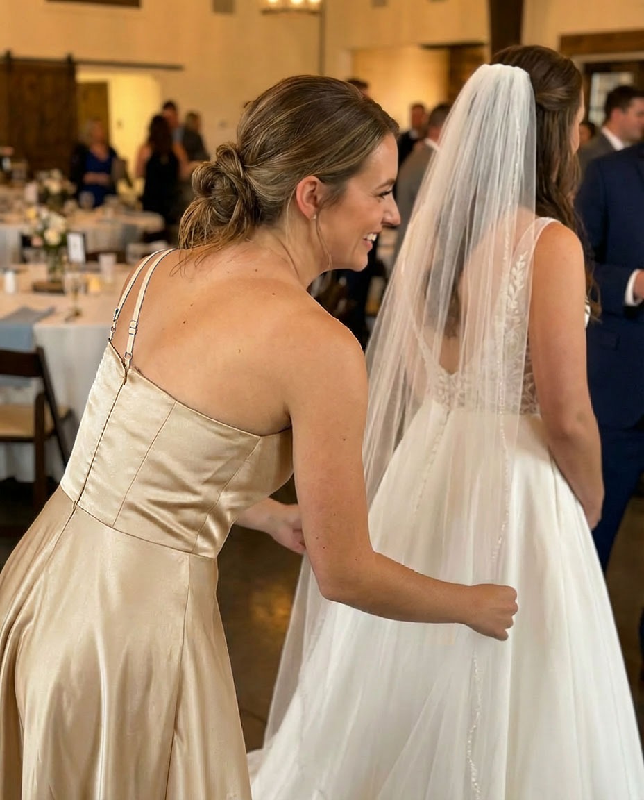 I was honestly a bit nervous about ordering a bridesmaid dress online, especially with satin because sometimes the fabric can look cheap in person. But this one totally surprised me!