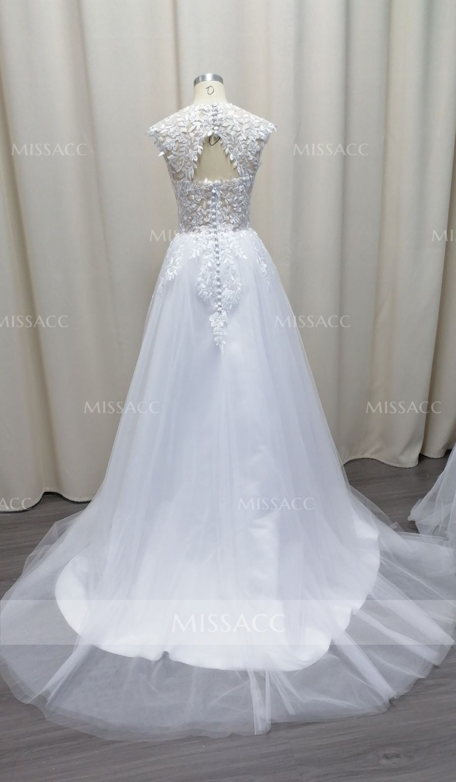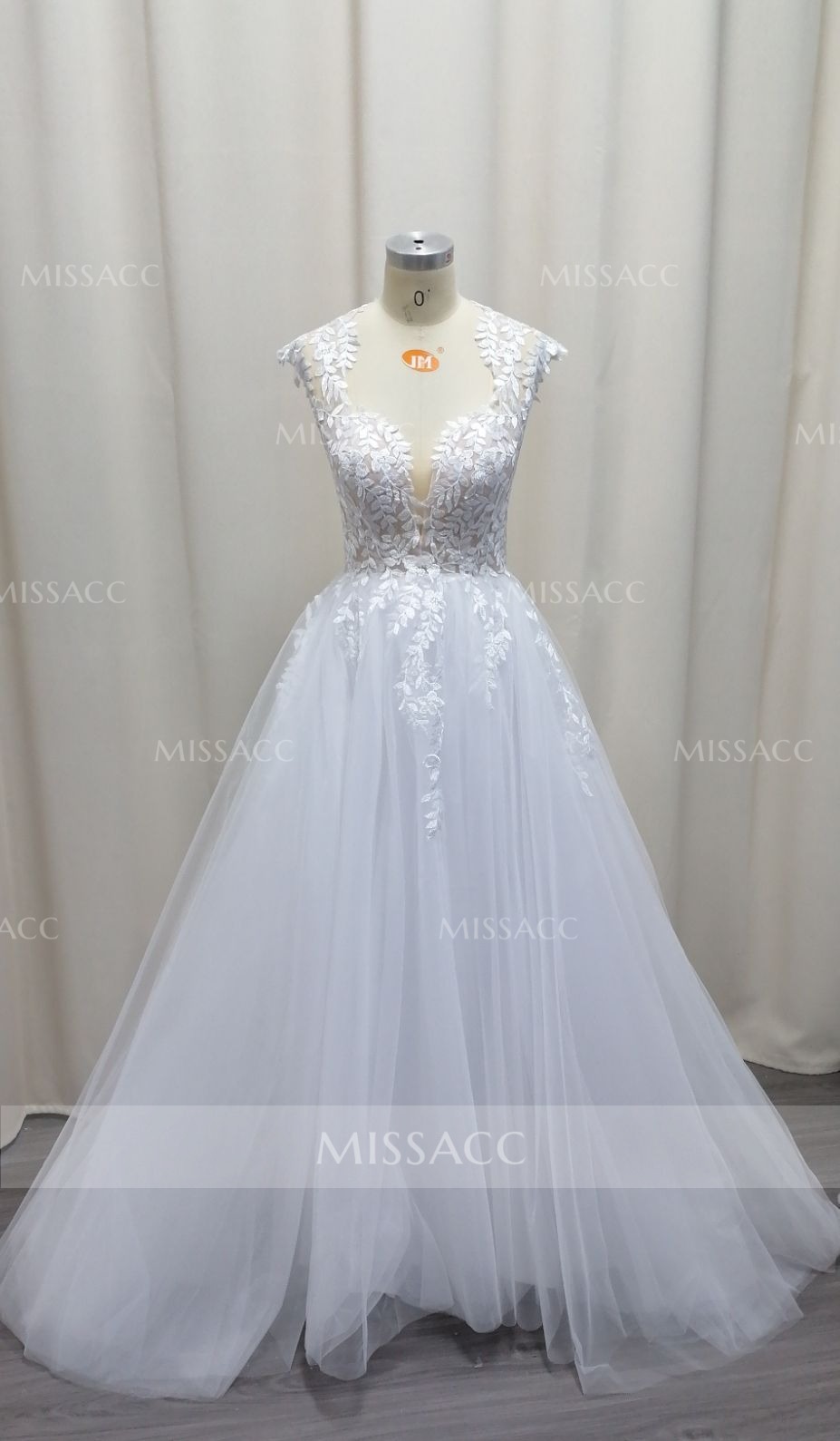 Dreamy Princess Ball Gown A-Line V-Neck Tulle Wedding Dresses With Appliques Lace