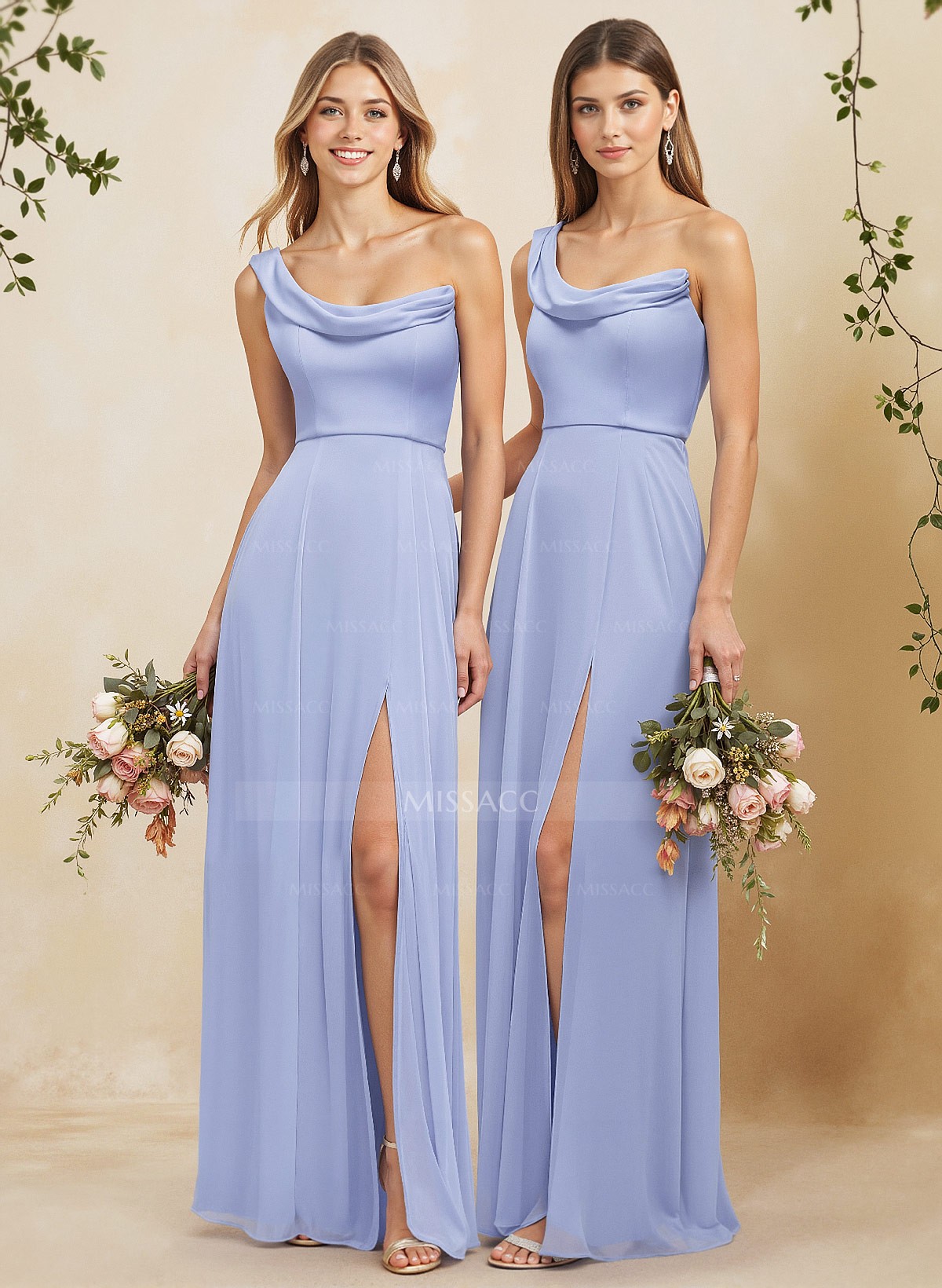 This Chiffon one-shoulder maxi dress is pure goddess energy. The draped cowl neckline flows effortlessly from front to back, giving it a sculpted look that feels like wearable art. The circle skirt is a total showstopper with a thigh-high slit that brings a bold, confident vibe. This stunning one-shoulder dress is here to own the room, blending that iconic goddess allure with modern style that's chic, fresh, and undeniably unforgettable.