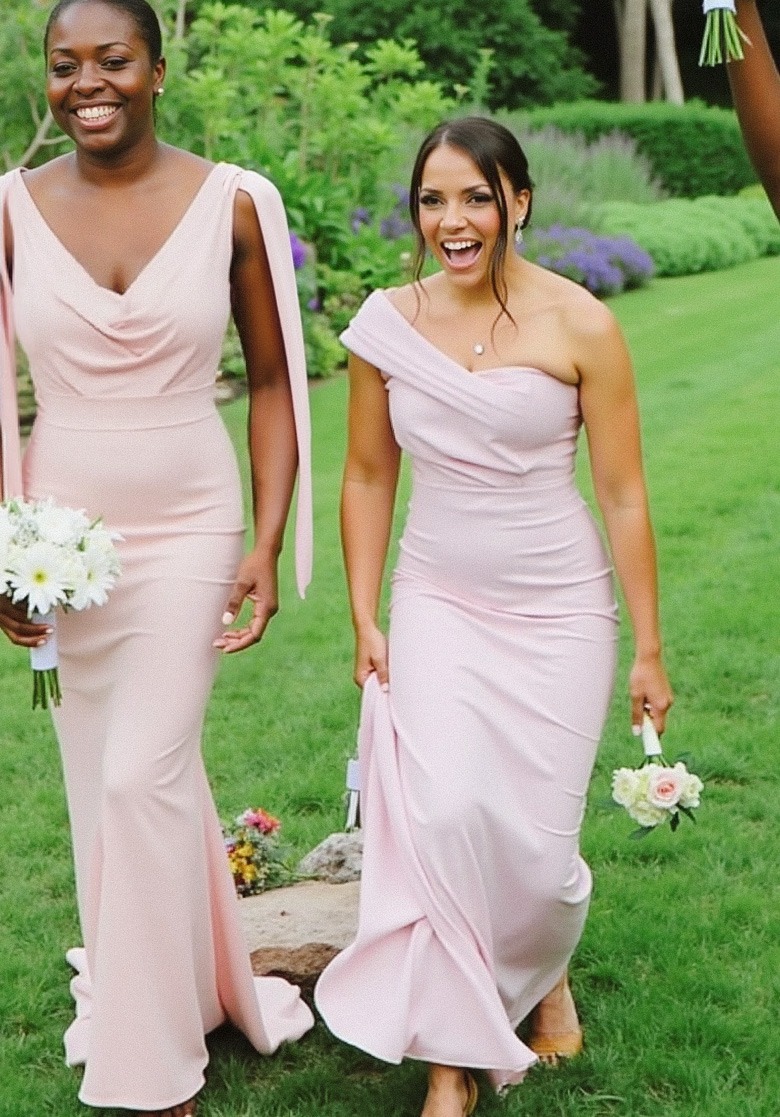 Elegant Cowl Neck Cowl Back Sweep Train Elastic Satin Bridesmaid Dresses