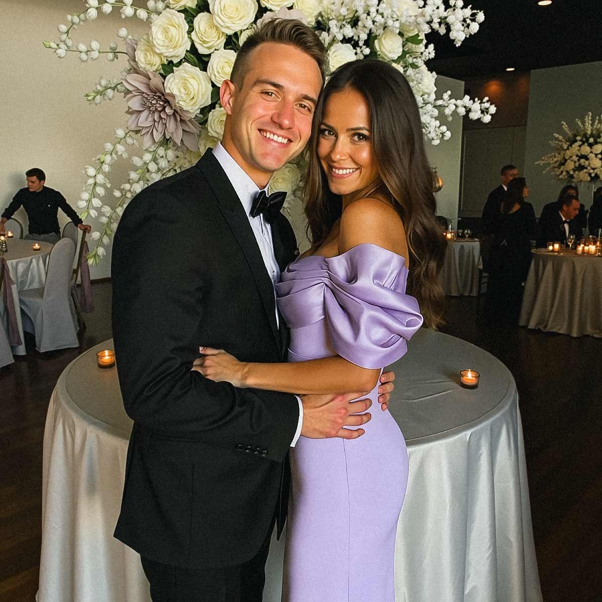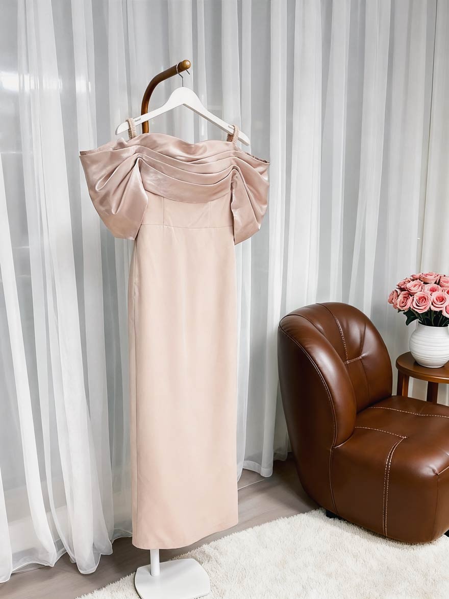 Got this dress for a black-tie event and it was a huge hit. It's so elegant and the off-the-shoulder neckline is just gorgeous. The material is lovely and smooth, and it didn't wrinkle during the car ride, which was a relief!