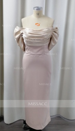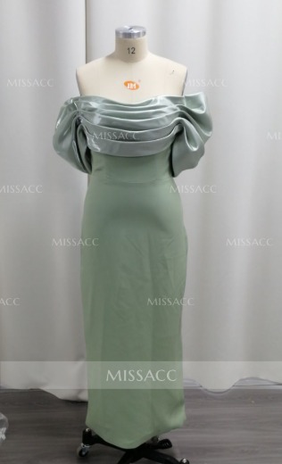 Luxurious satin evening gown, off-the-shoulder design, ankle length, back slit. Perfect for formal events, weddings, and parties. Shop elegant dresses online for women.