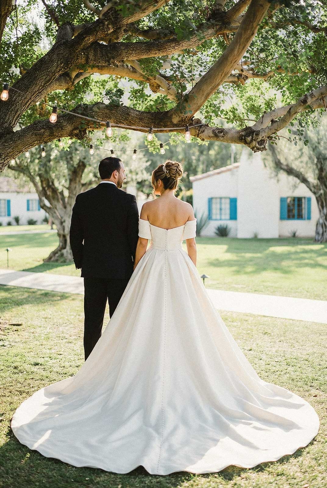 I am still obsessing over how good this dress looked in my photos! The off-the-shoulder neckline is so romantic and flattering. I was worried it might slip down constantly, but the construction is solid and it stayed in place all night. The A-line silhouette is perfect if you want to hide a food baby after the reception dinner, haha! The court train is just the right length—dramatic enough for walking down the aisle but manageable for moving around later. One thing to note is that the sizing runs pretty true, so follow the chart exactly. I ordered a size up just in case and had to take it in, but that was my own fault. It arrived earlier than expected, too. Overall, a really solid choice for a bride who wants that classic, elegant vibe without spending thousands at a boutique.
