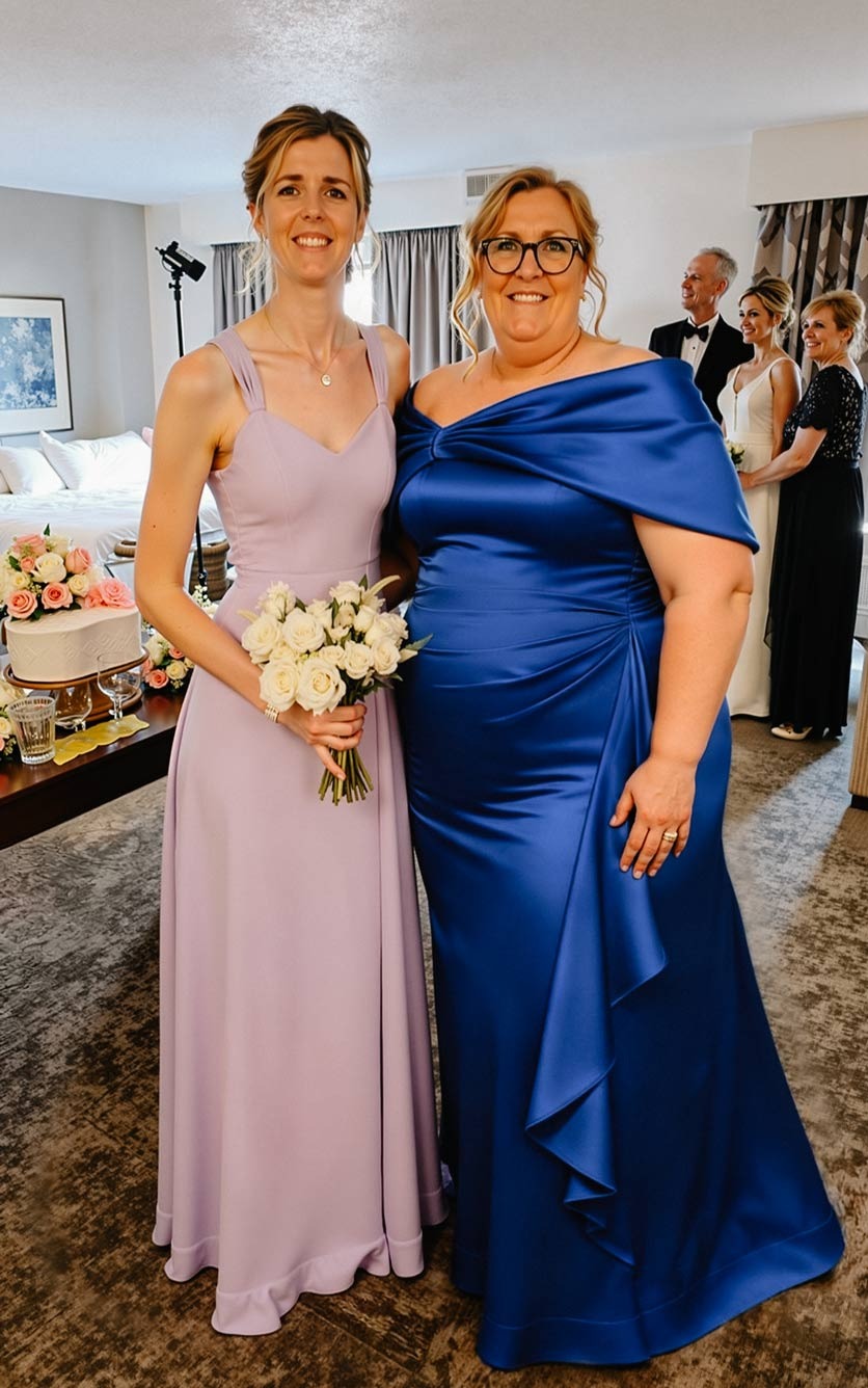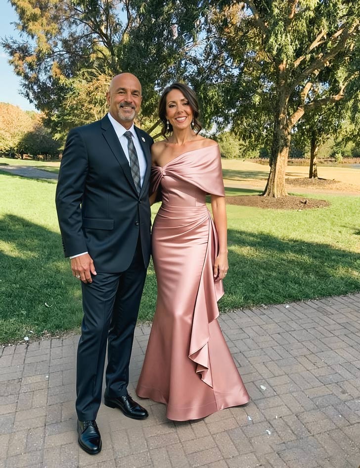 I bought this for my mom for my sister's wedding. She is very picky about fabrics and usually hates satin because she thinks it shows too many bumps, but this matte satin is different. It has a nice weight to it and smooths everything out. We got the custom sizing, and honestly, it was worth the extra wait. We didn't have to do any alterations locally. She looked absolutely stunning walking down the aisle. If you are looking for something that looks classy without trying too hard, this is it.
