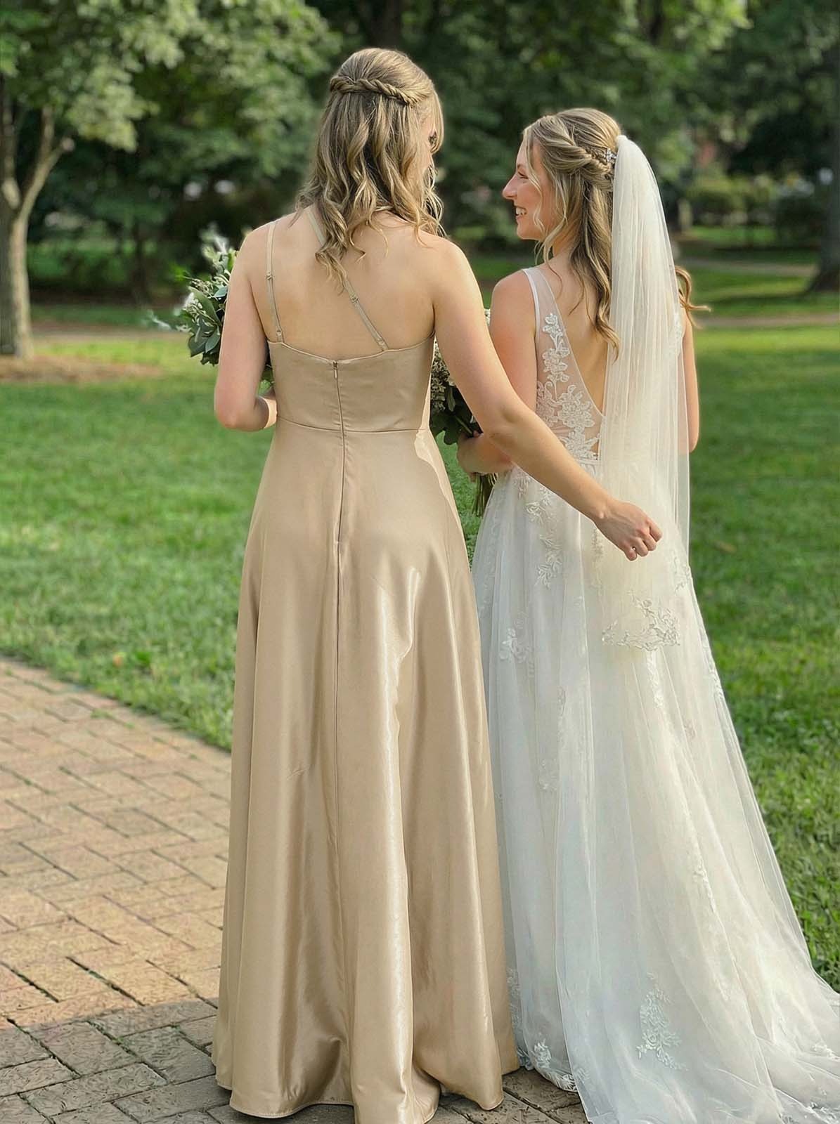 I was really worried about ordering a dress online for my best friend's wedding, but this one turned out great. The satin feels nice and smooth, not cheap at all. I just need to get the hem taken up a little bit because I'm short.