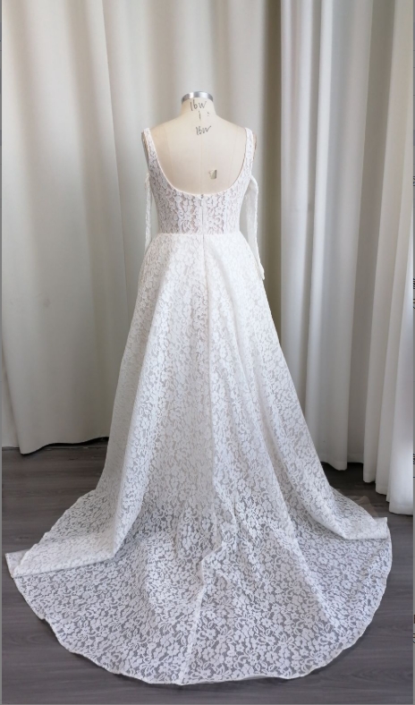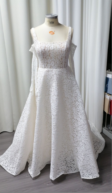 I was honestly so nervous about ordering my wedding dress online, but this turned out to be a pleasant surprise. I wanted something that felt classic but practical for my backyard ceremony, and the square neckline on this is just timeless. The best part? It actually has pockets! I kept my vows and a tissue in there the whole time. The lace detailing is really pretty up close, not scratchy like I feared. I did have to get the hem shortened a bit since I'm on the shorter side, but otherwise, the fit was surprisingly good right out of the bag. It felt heavy in a quality way, not flimsy at all.