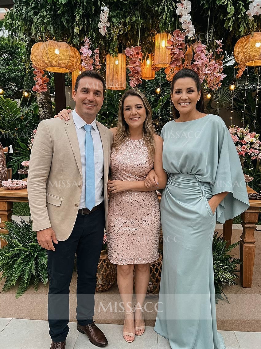 Stylish strapless satin evening dress with a bow detail, perfect for formal events. Floor-length, elastic waist for a flattering fit.