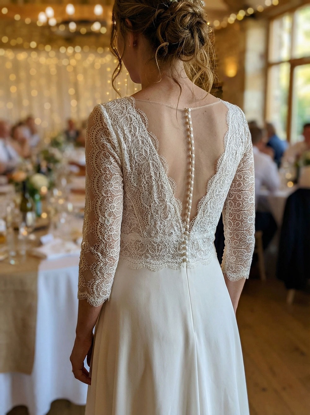 it's a real stunner! The fabric is soft and the lace detailing is just gorgeous. It fits me like a glove, and I've already received so many compliments. Can't wait to wear it on the big day!