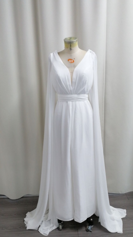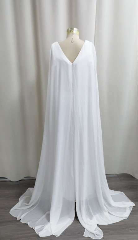 Elegant V-Neck Cape Sleeves Sweep Train Chiffon Wedding Dresses #SWD12670