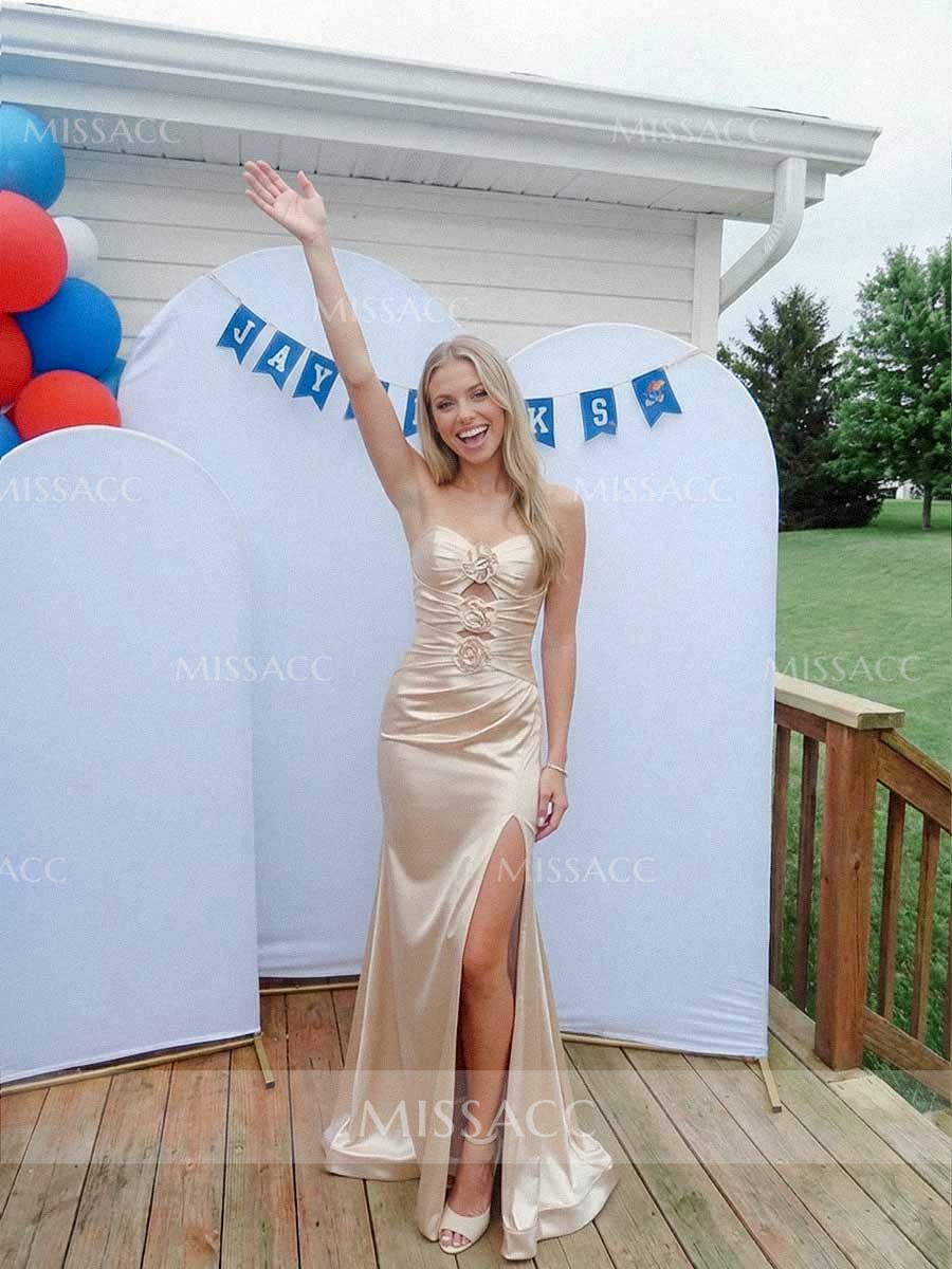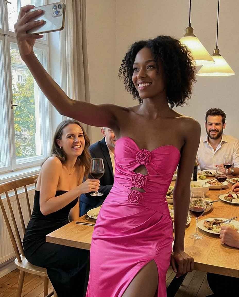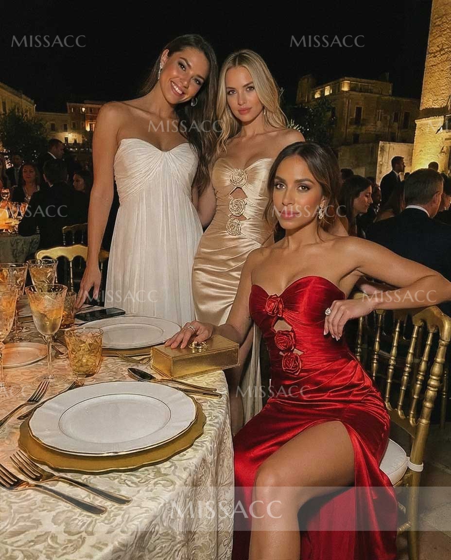 This champagne gown was made for my graduation party! Let’s start with the details: those 3D roses down the front? So elegant, and the slit made moving easy. The satin fabric felt luxurious but not scratchy—total win for a long day of hugging guests and taking photos. Fit-wise? I ordered my usual size, and it clung in all the right places (no awkward adjustments mid-party!). Plus, the strapless design stayed up all night—no constant pulling. Whether I was waving for pics or sitting to eat cake, it stayed comfy. 100% recommend for anyone needing a showstopper that doesn’t sacrifice comfort!