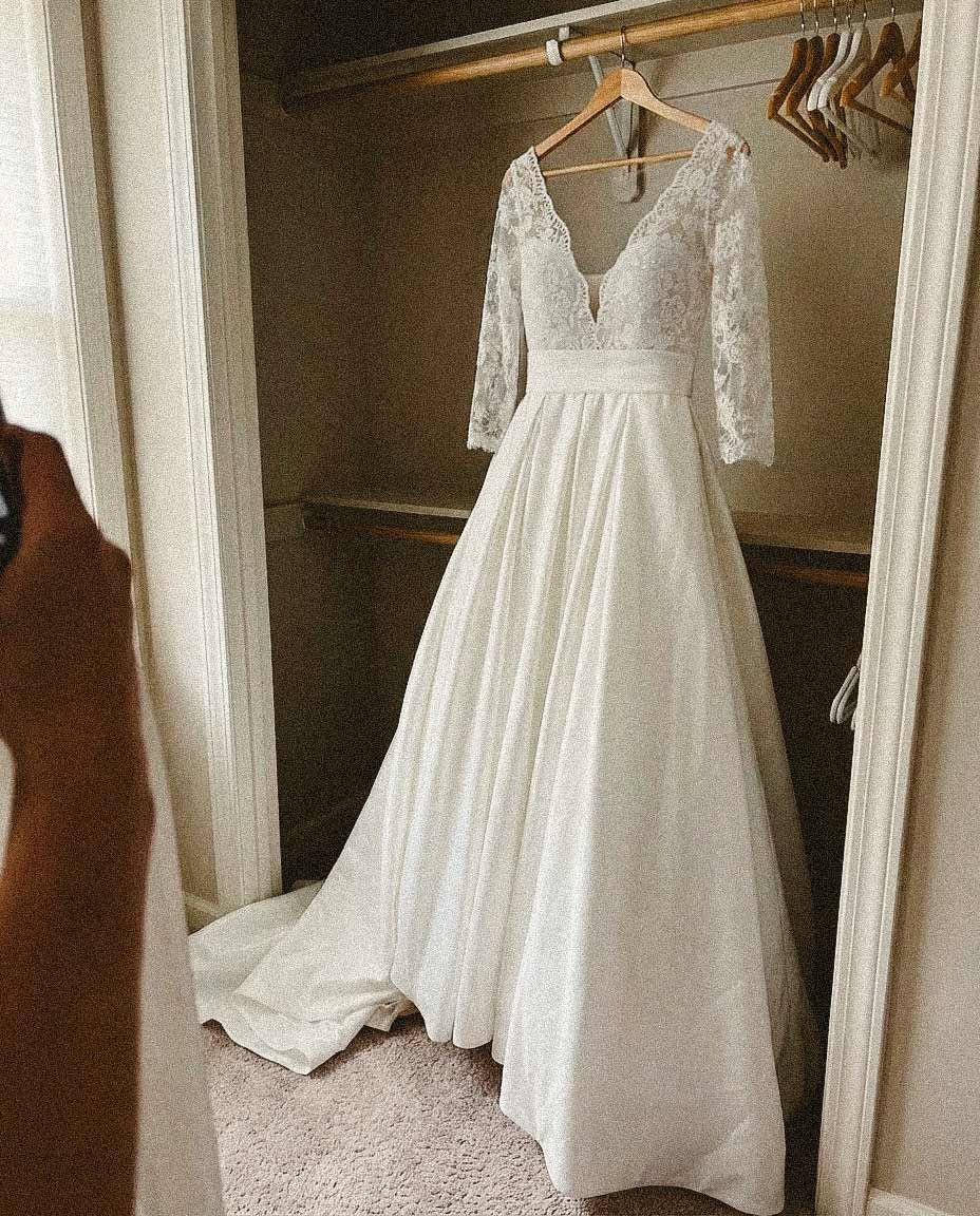 Free-Spirited Square Neckline Long Lantern Sleeves Satin Wedding Dresses