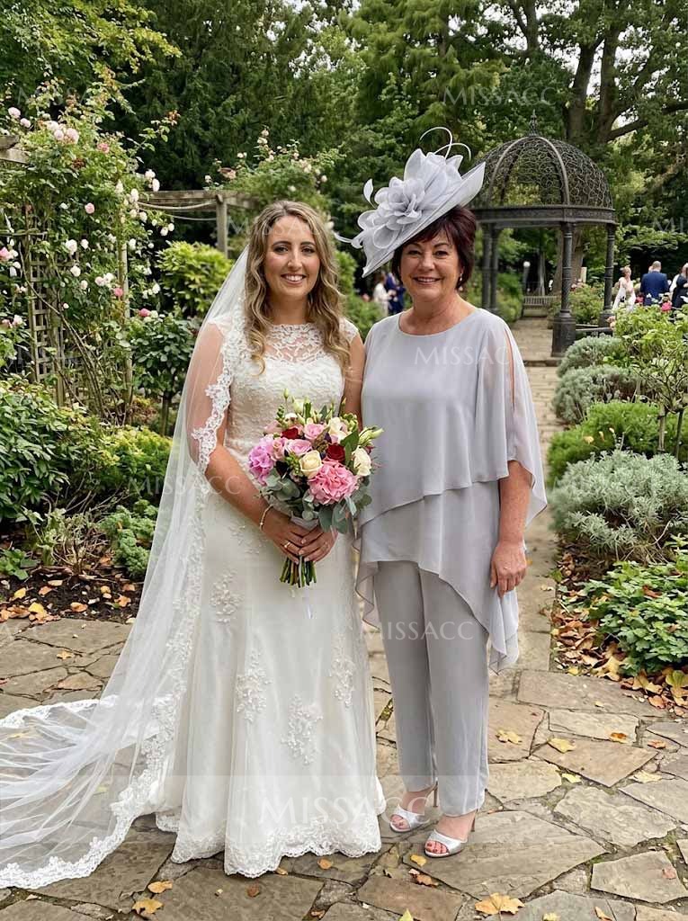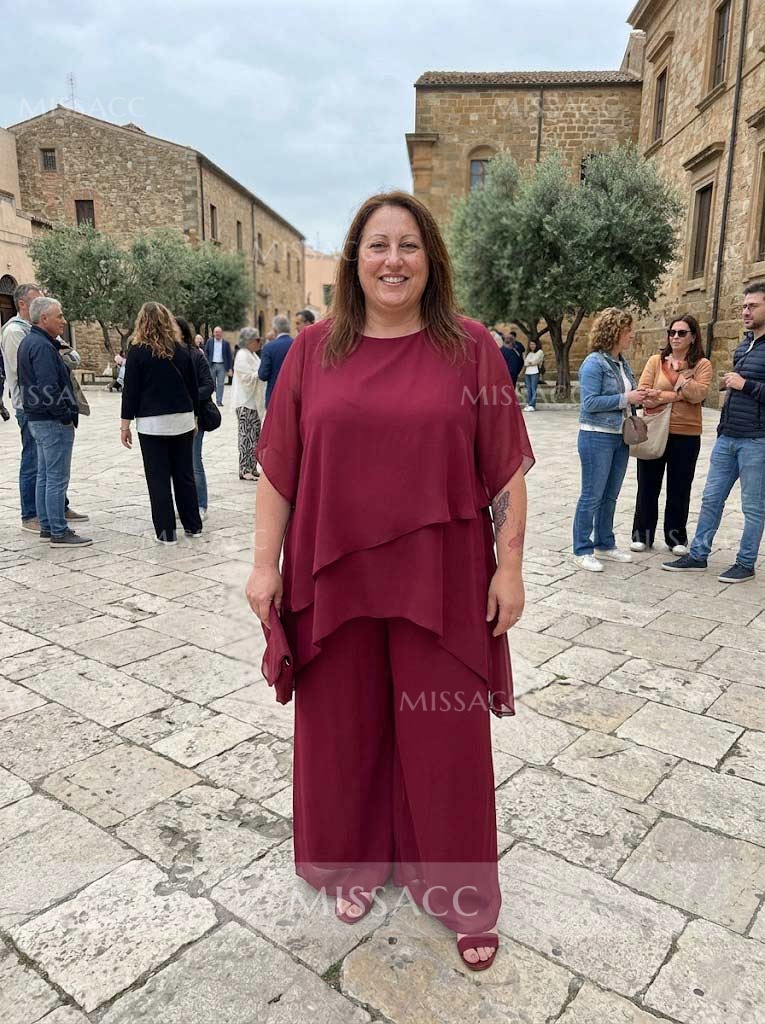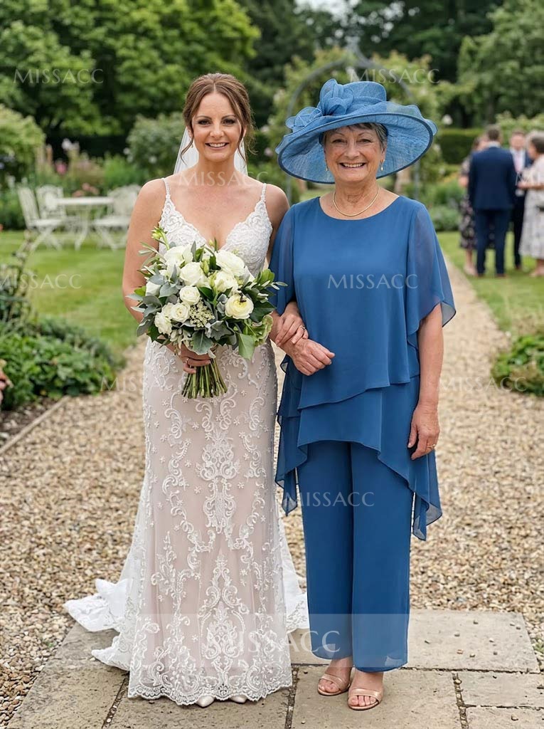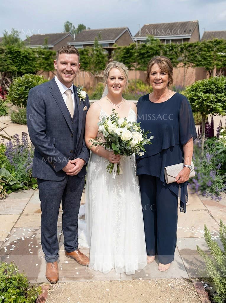 Honestly, I was super nervous about buying a jumpsuit online for my daughter's wedding, but this one worked out great. It fits well in the hips. A quick hem fixed that. The chiffon feels nice and breezy, perfect for a summer outdoor ceremony.