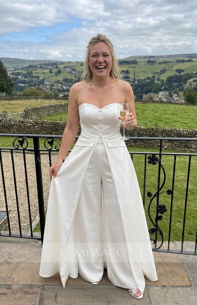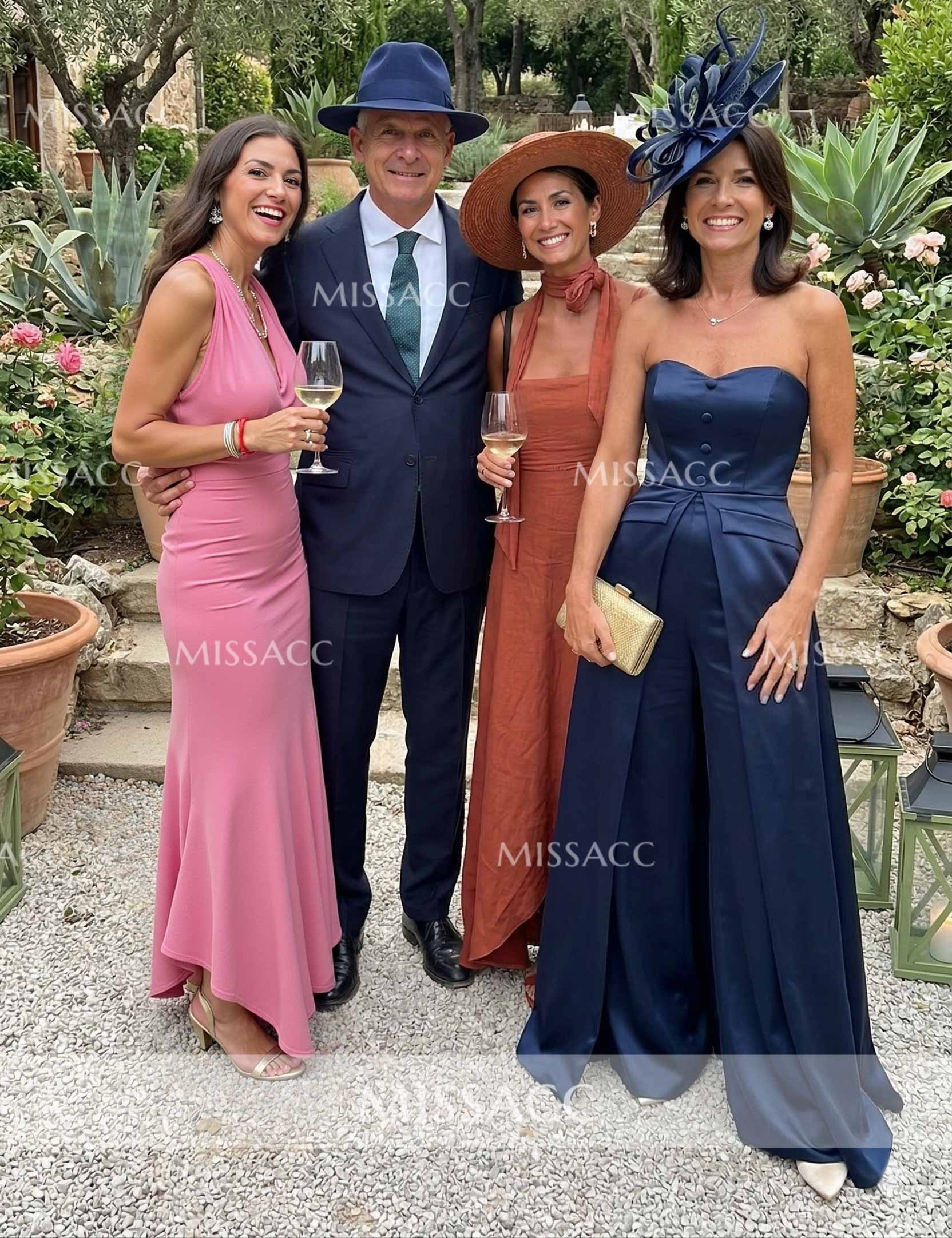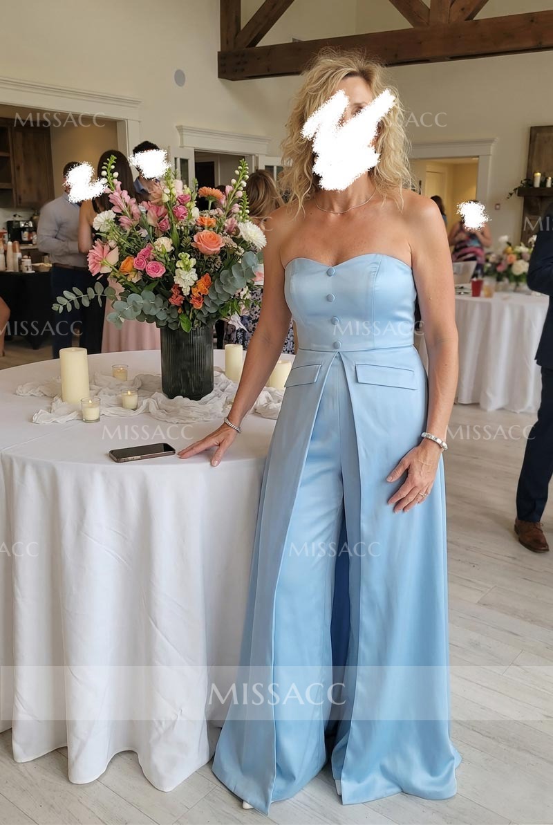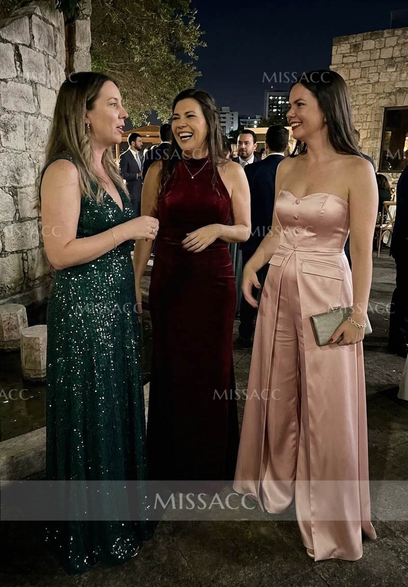 The navy blue color is so rich and classy. I love the wide-leg pants, they are super comfortable for dancing. The only minor issue was the zipper was a little stiff at first, but it loosened up. Overall, a fantastic purchase for special events.