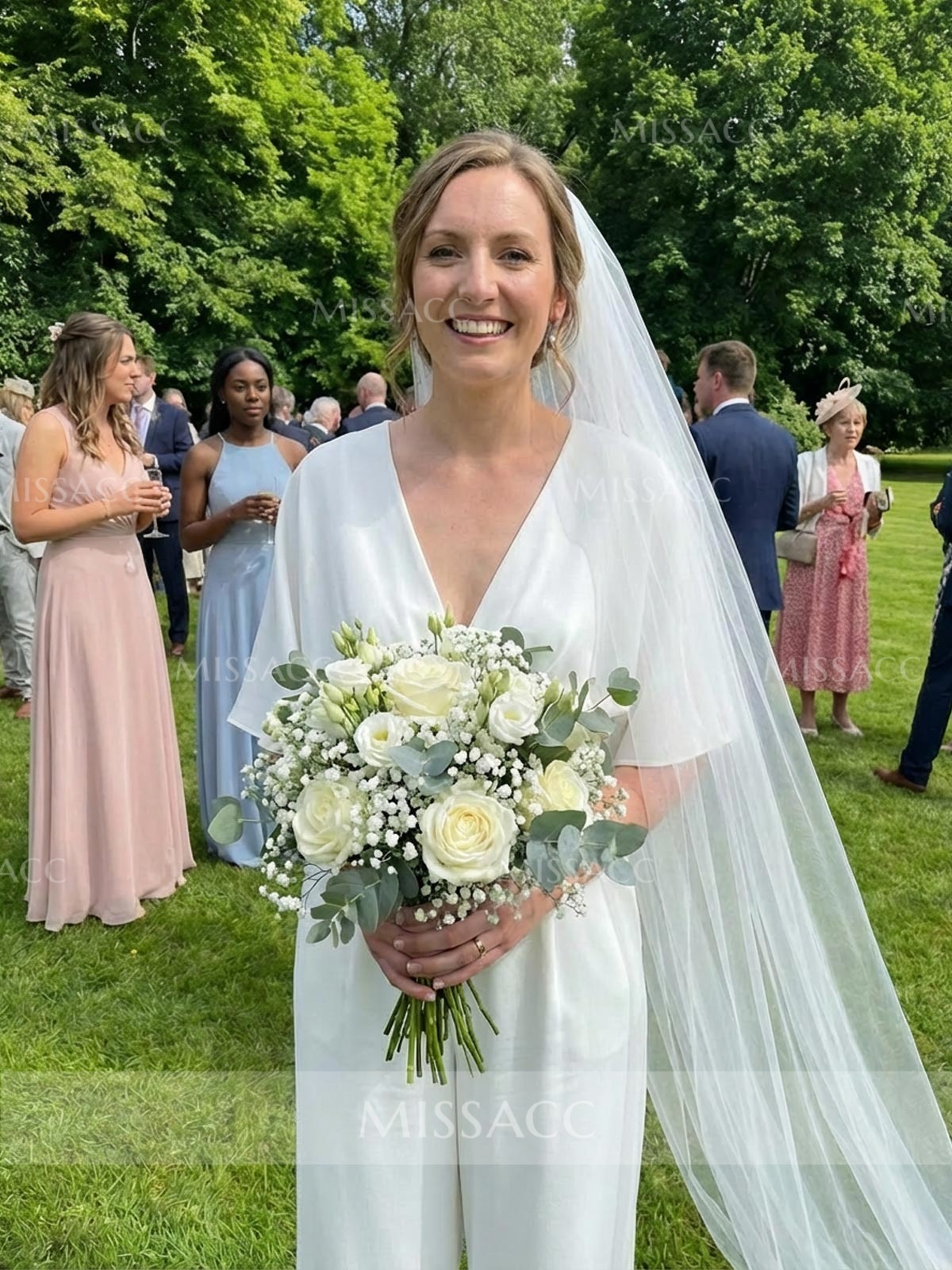 I was hesitant about ordering a wedding outfit online, but this jumpsuit actually surprised me. The fit is pretty spot on, though the legs are a tiny bit long for my height. I love that it has pockets! The fabric feels decent, not super high-end but definitely not cheap. It’s perfect for the low-key courthouse ceremony we’re planning. Honestly, for the price, it’s a solid win. Just be ready to maybe hem the pants if you aren't wearing super high heels.