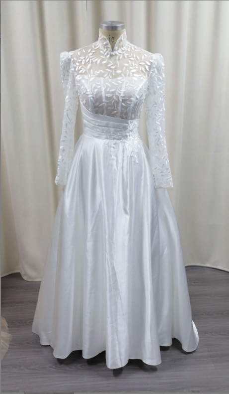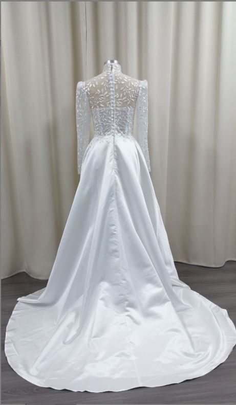 This dress is absolutely perfect! It's so elegant, and the high neckline gives it a truly regal vibe. I felt like a princess on my wedding day. I'd definitely recommend this dress to any bride!