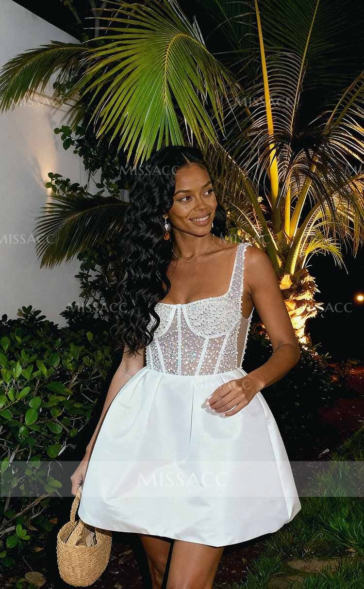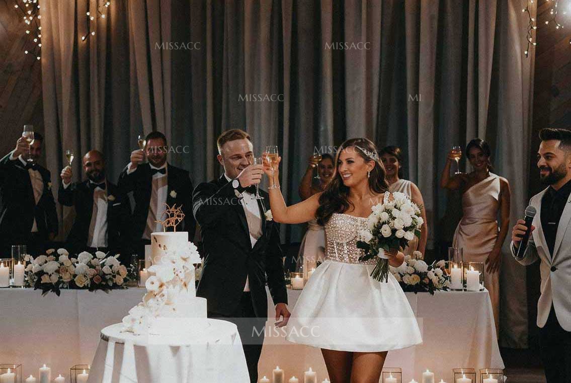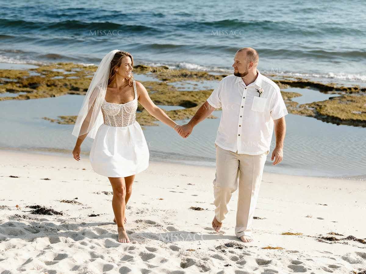 I got this dress for a more casual wedding I'm attending as a guest, and it's perfect. It’s a nice alternative to a long gown, and I love the mini length. The satin is a good quality and drapes nicely. The corset is more for show than serious shaping, but it still looks great and adds a touch of glam. I was worried about the illusion lace, but it's done really well and looks tasteful. It's a solid choice for a party or a wedding.