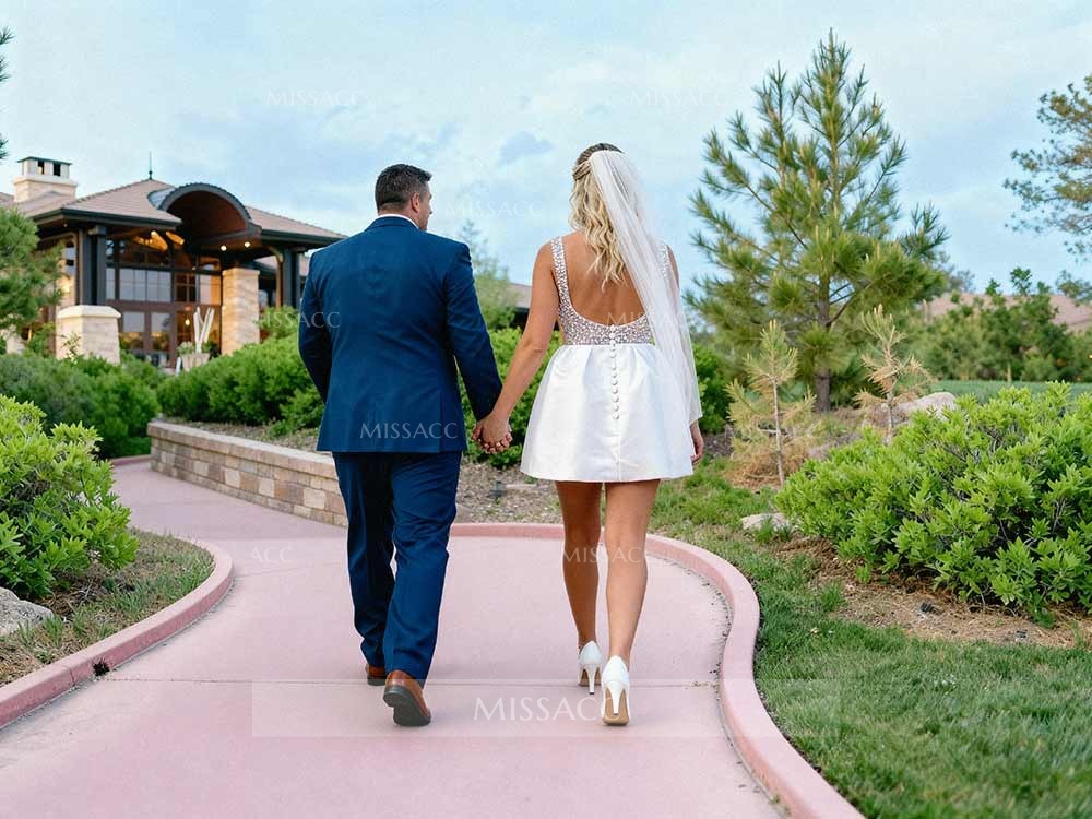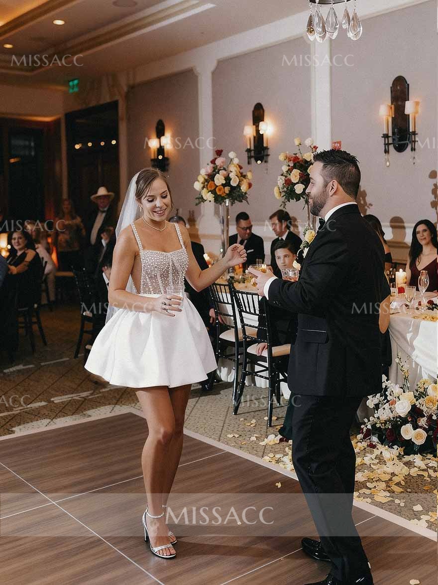 I'm absolutely in love with this dress! It arrived so much faster than I expected, and when I opened the box, I was honestly blown away. The satin is super smooth and has a really nice sheen to it, not cheap at all. I'm planning on wearing it for a courthouse wedding, and it feels so elegant but also fun and a little flirty because it's short. The corset detailing is surprisingly comfortable, not too tight, and it really gives you a nice shape. I can't wait to wear it for my big day! Definitely a great find.