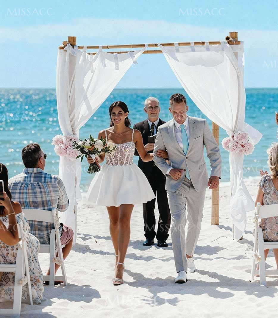 This dress is a great option for a smaller, more intimate wedding ceremony. I was looking for something that felt special but not over-the-top, and this delivered. The satin is a beautiful fabric, and the lace detail is subtle and classy. I appreciate that it's a mini length; it makes it feel more contemporary and easy to wear. The corset is more of a stylistic element, but it still looks lovely.
